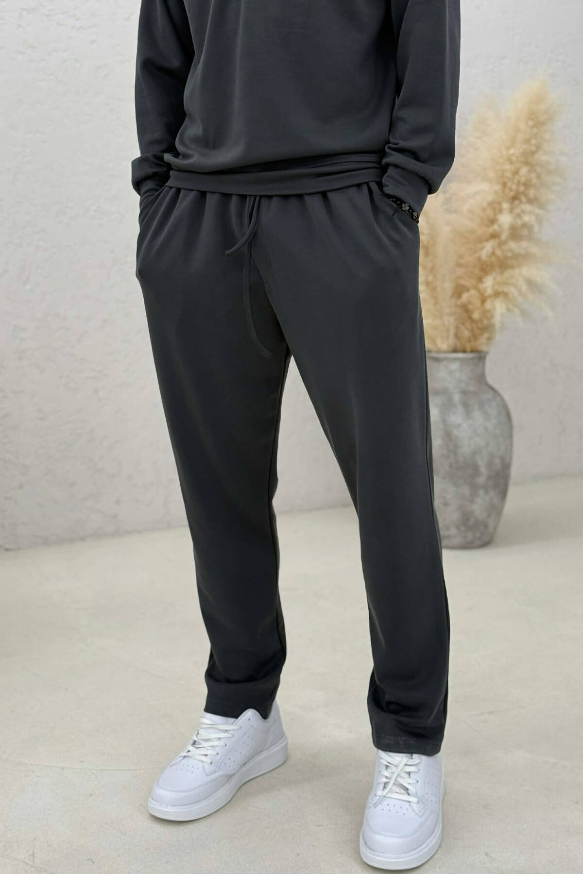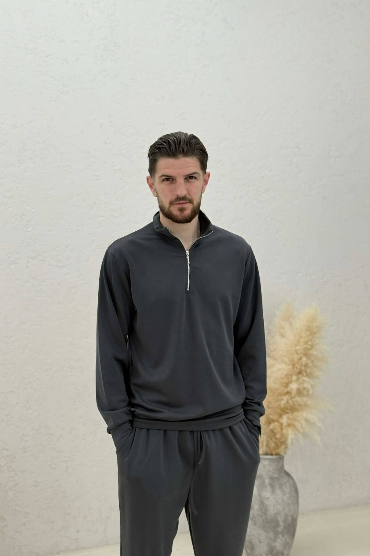 ONE COLOR ZIPPER NECK SWEATSHIRT+ SWEATPANTS MEN SET DARK GREY/GEE