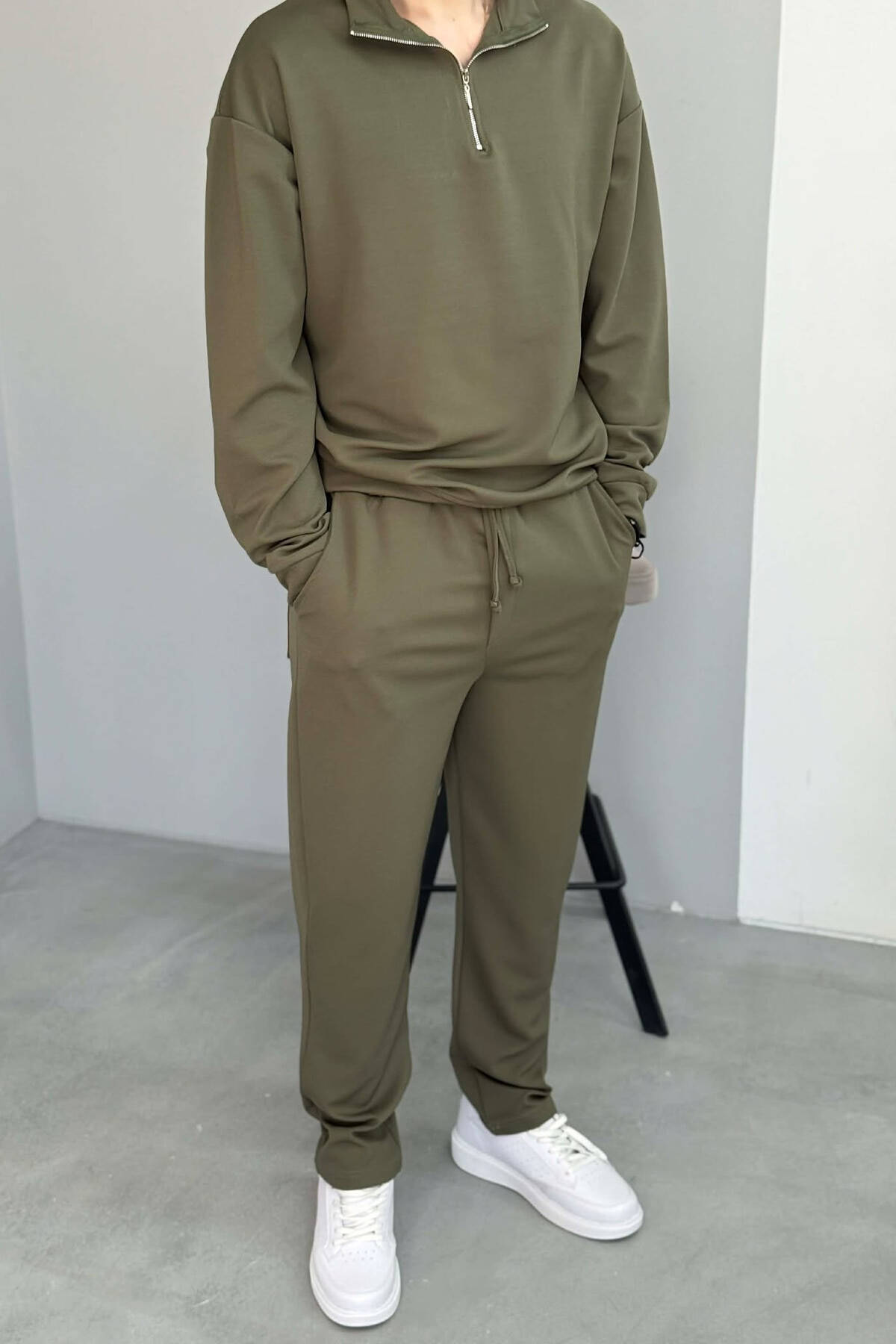ZIPPER NECK SWEATSHIRT +SWEATPANTS MEN SET OLIVE/ULLI