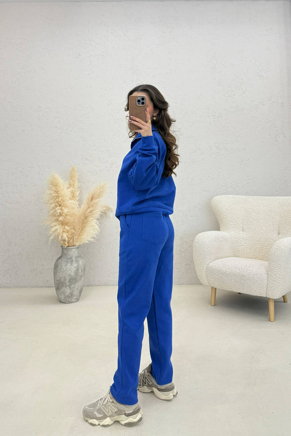 ONE COLOR ZIPPER NECK SWEATSHIRT+ SWEATPANTS WOMEN SET BLUE/BLU