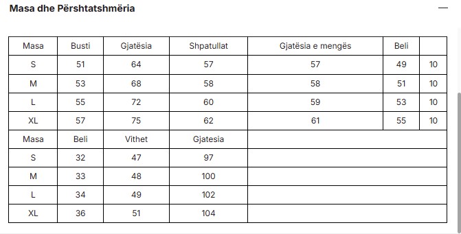 Size chart