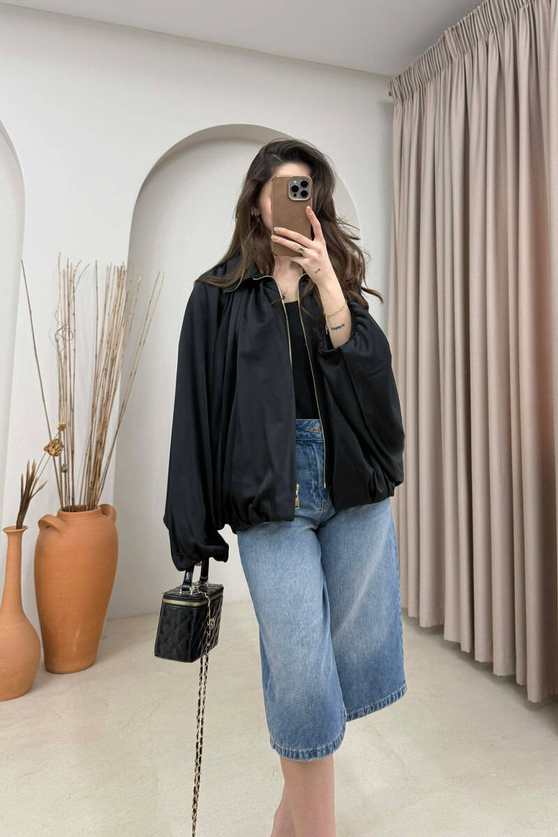 ONE COLOR ZIPPER SHINY WOMEN JACKET BLACK/ E ZEZE