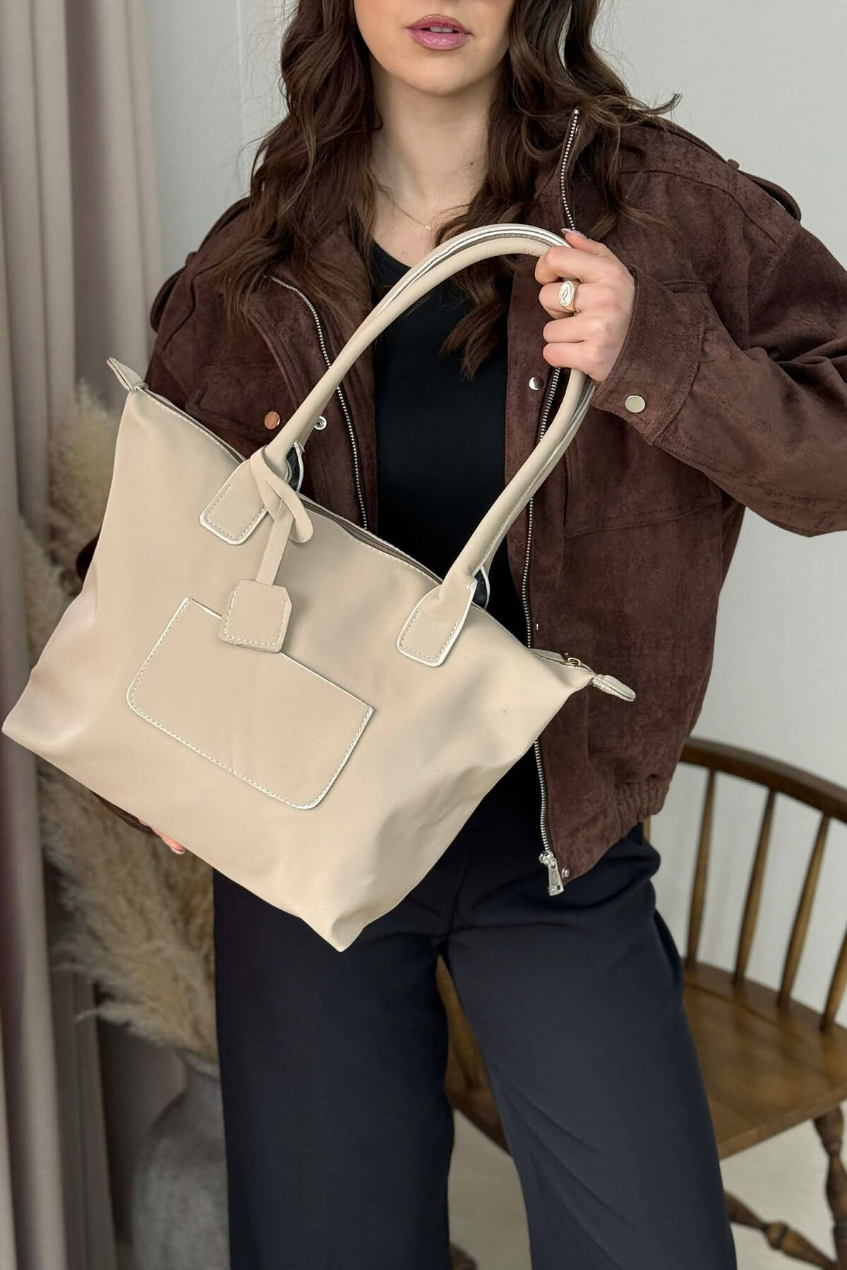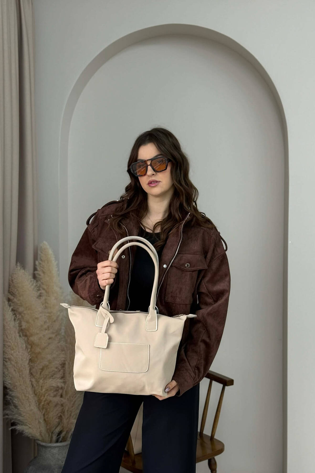 ÇANTE E THJESHTE ME DETAJIN E SHALLIT PER FEMRA NE NGJYRE BEZHE