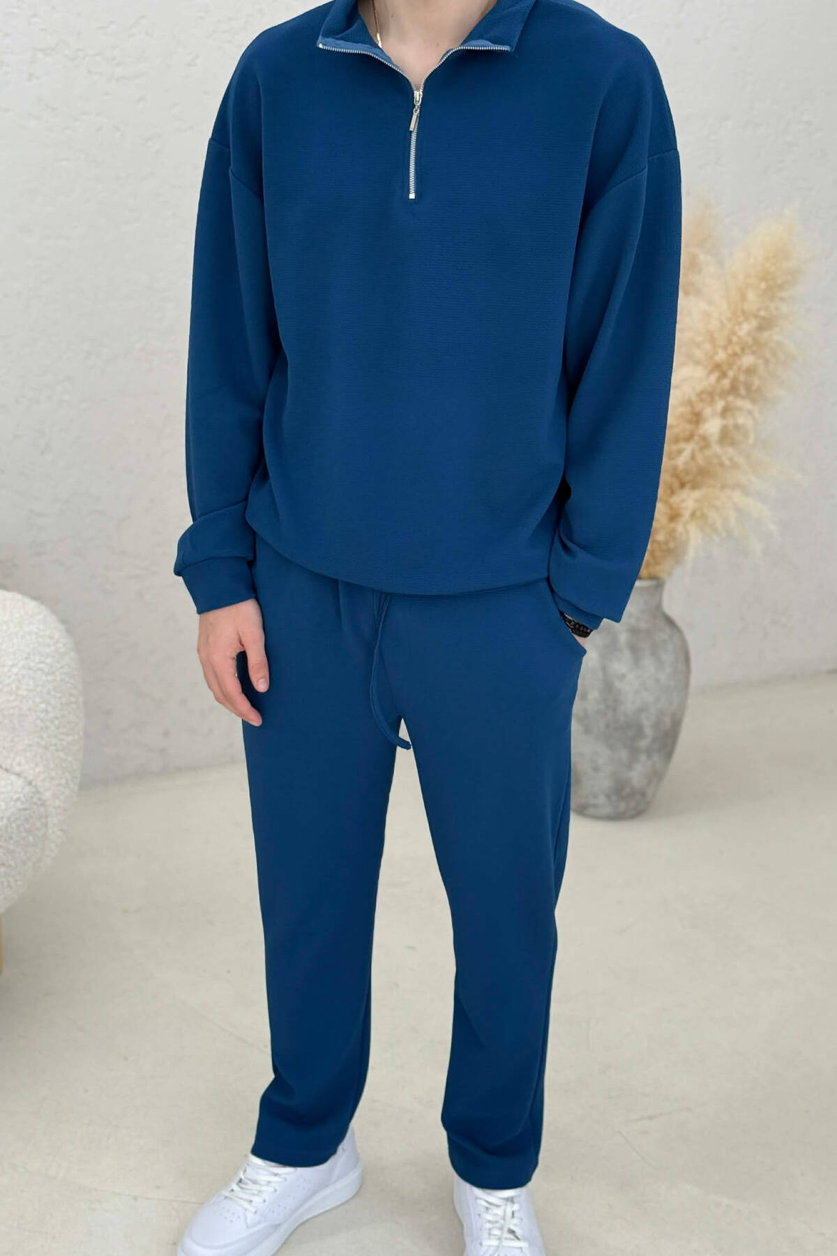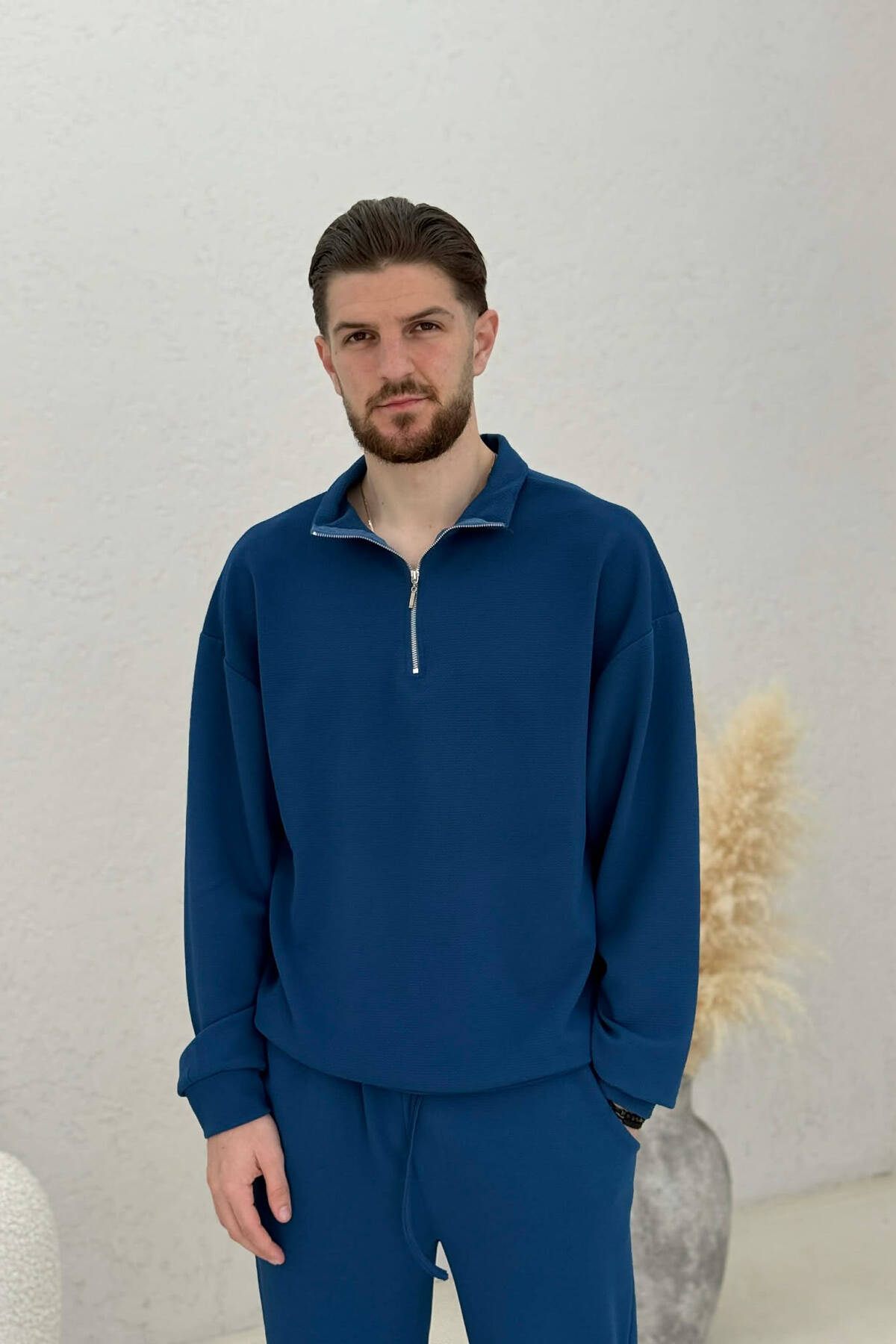 ONE COLOR ZIPPER NECK SWEATSHIRT+ SWEATPANTS MEN SET BLUE/BLU