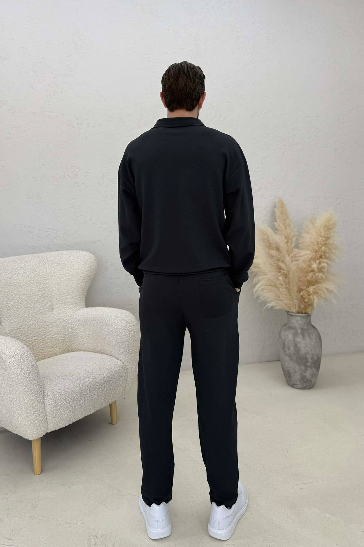 ONE COLOR ZIPPER NECK SWEATSHIRT+ SWEATPANTS MEN SET BLACK/ E ZEZE