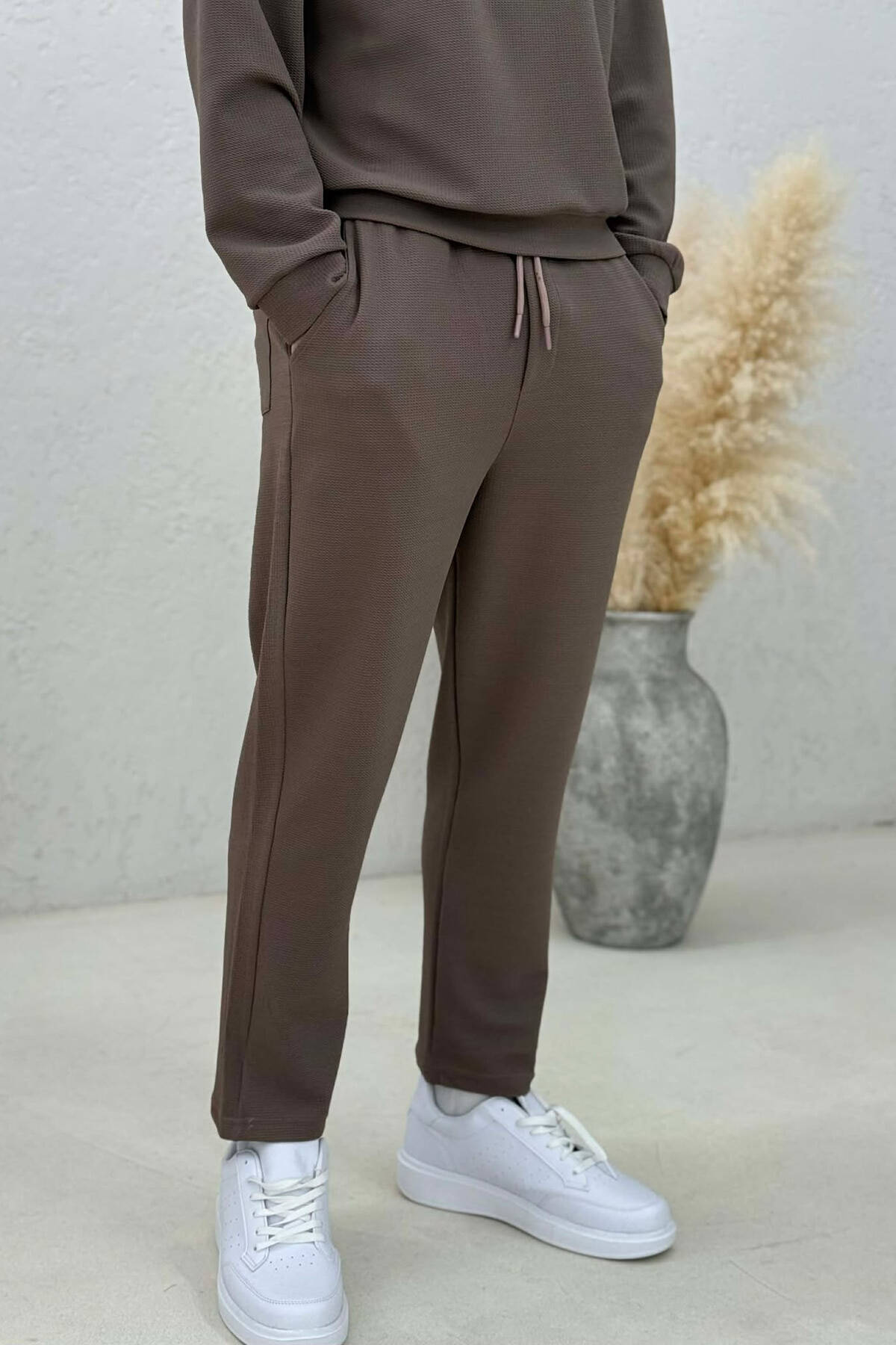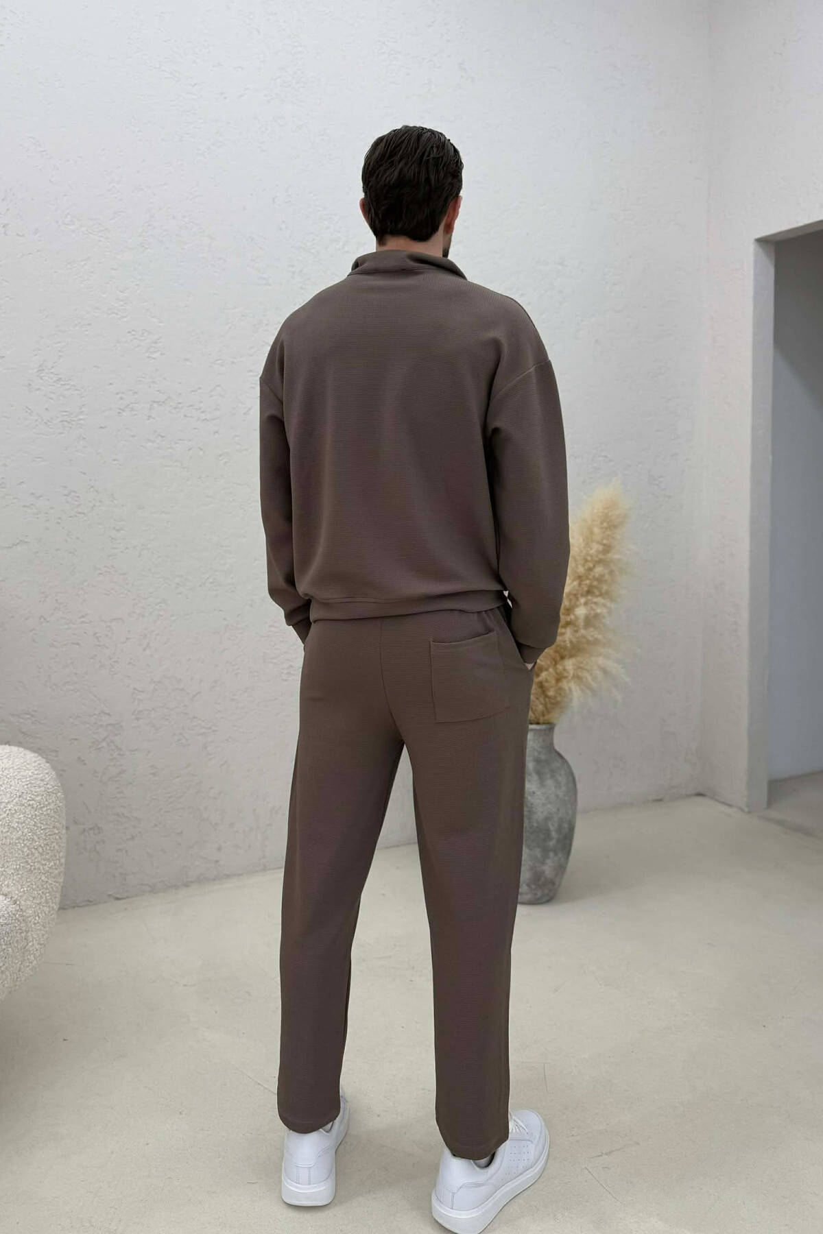ONE COLOR ZIPPER NECK SWEATSHIRT + SWEATPANTS MEN SET BROWN/KAFE