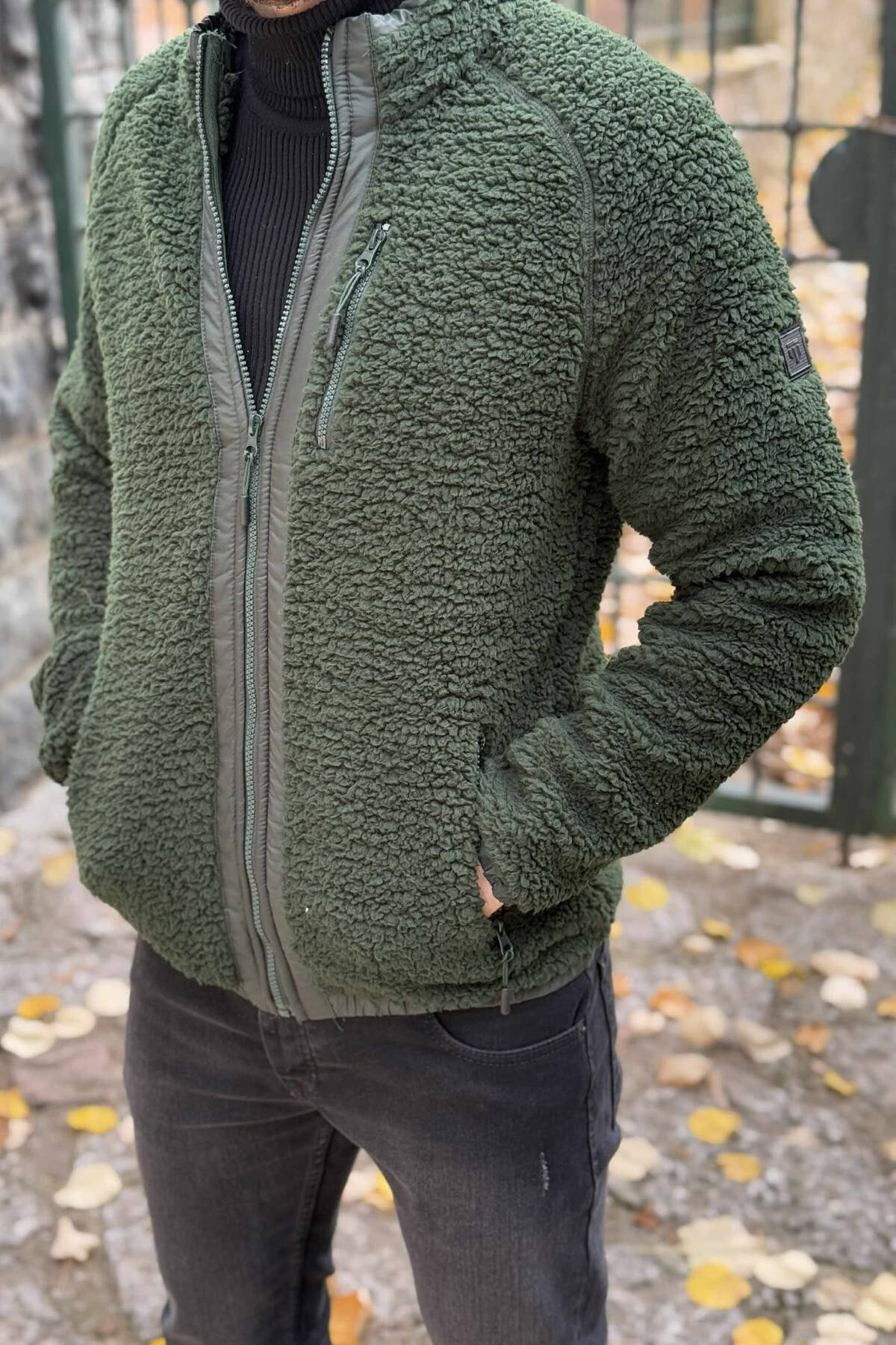ONE COLOR ZIPPER TEDDY MEN JACKET GREEN/JESHILE