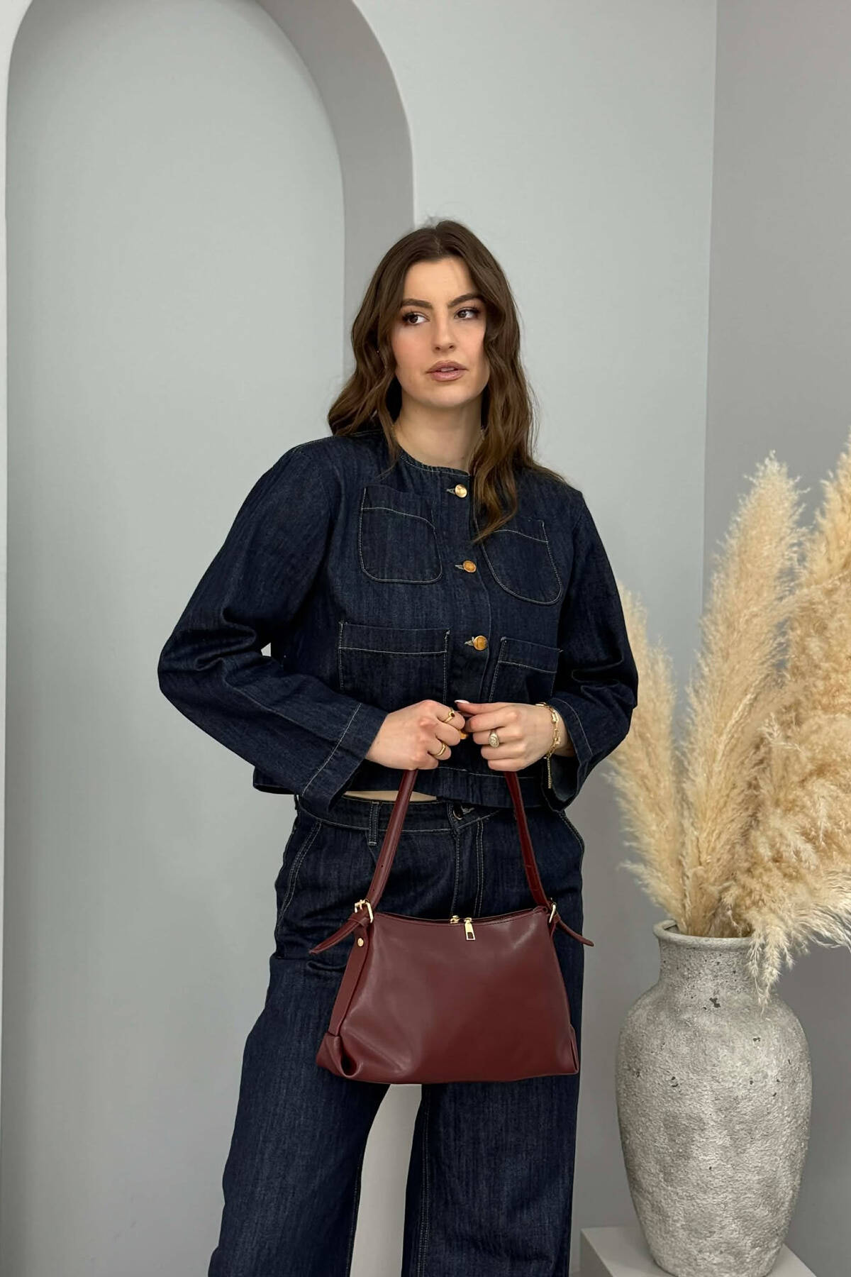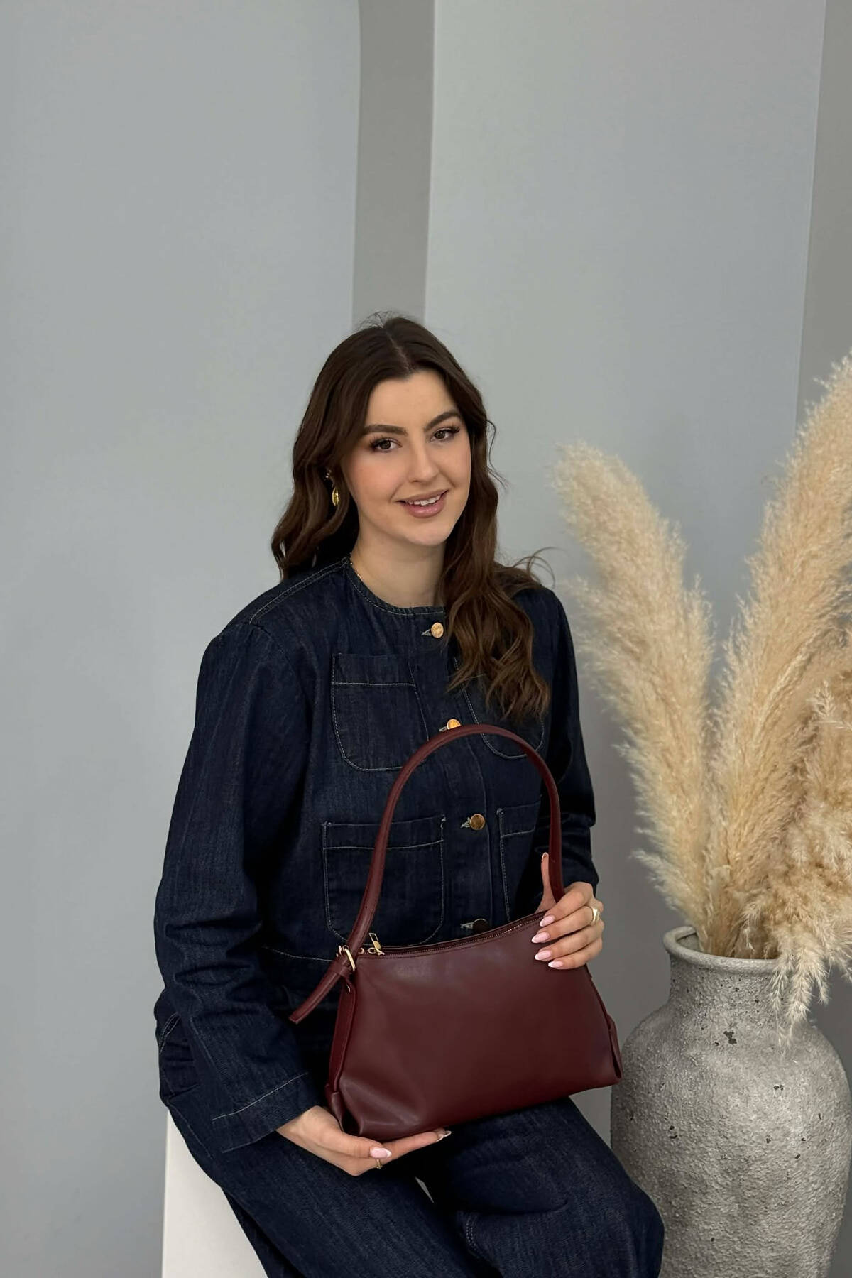 ONE COLOR LEATHER WOMEN BAG BURGUNDY/VISHNJE