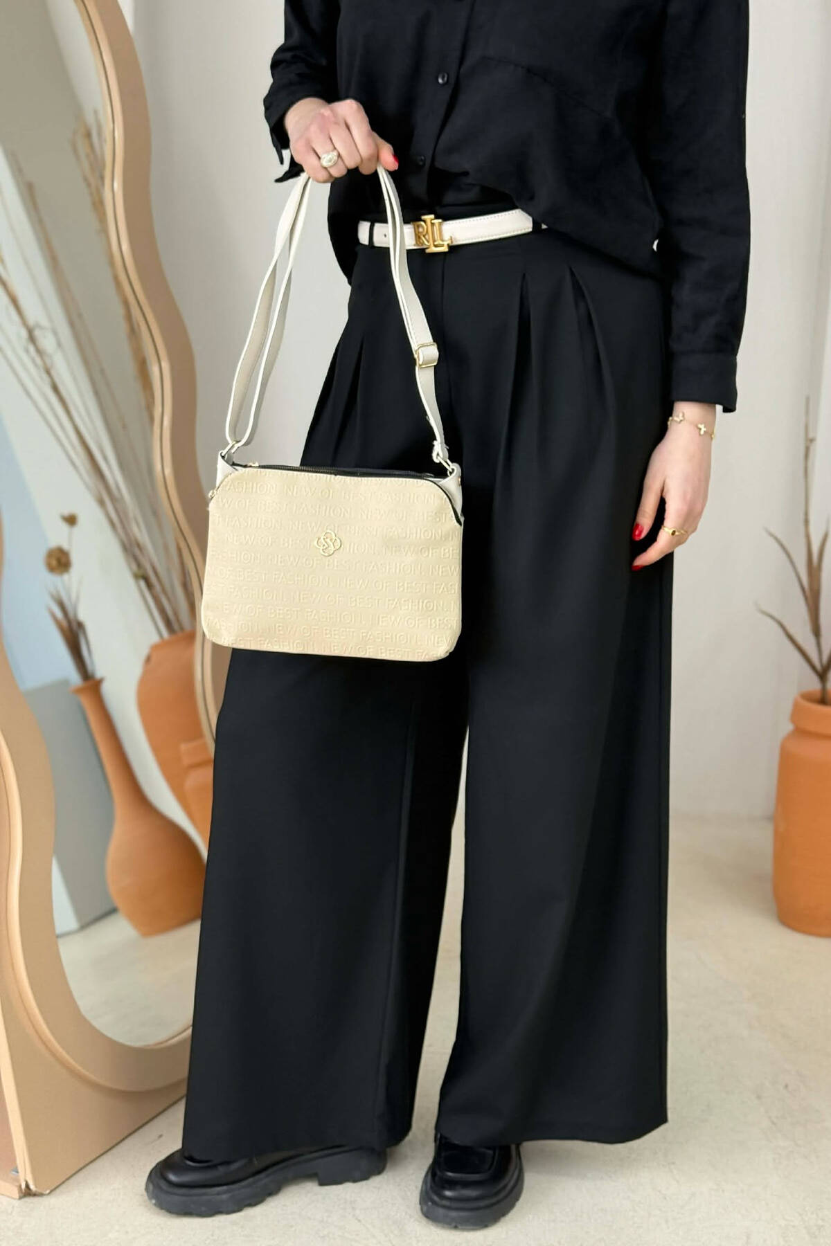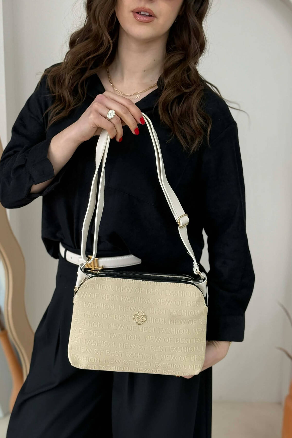 ONE COLOR ZIPPER WOMAN BAG CREAM/KREM