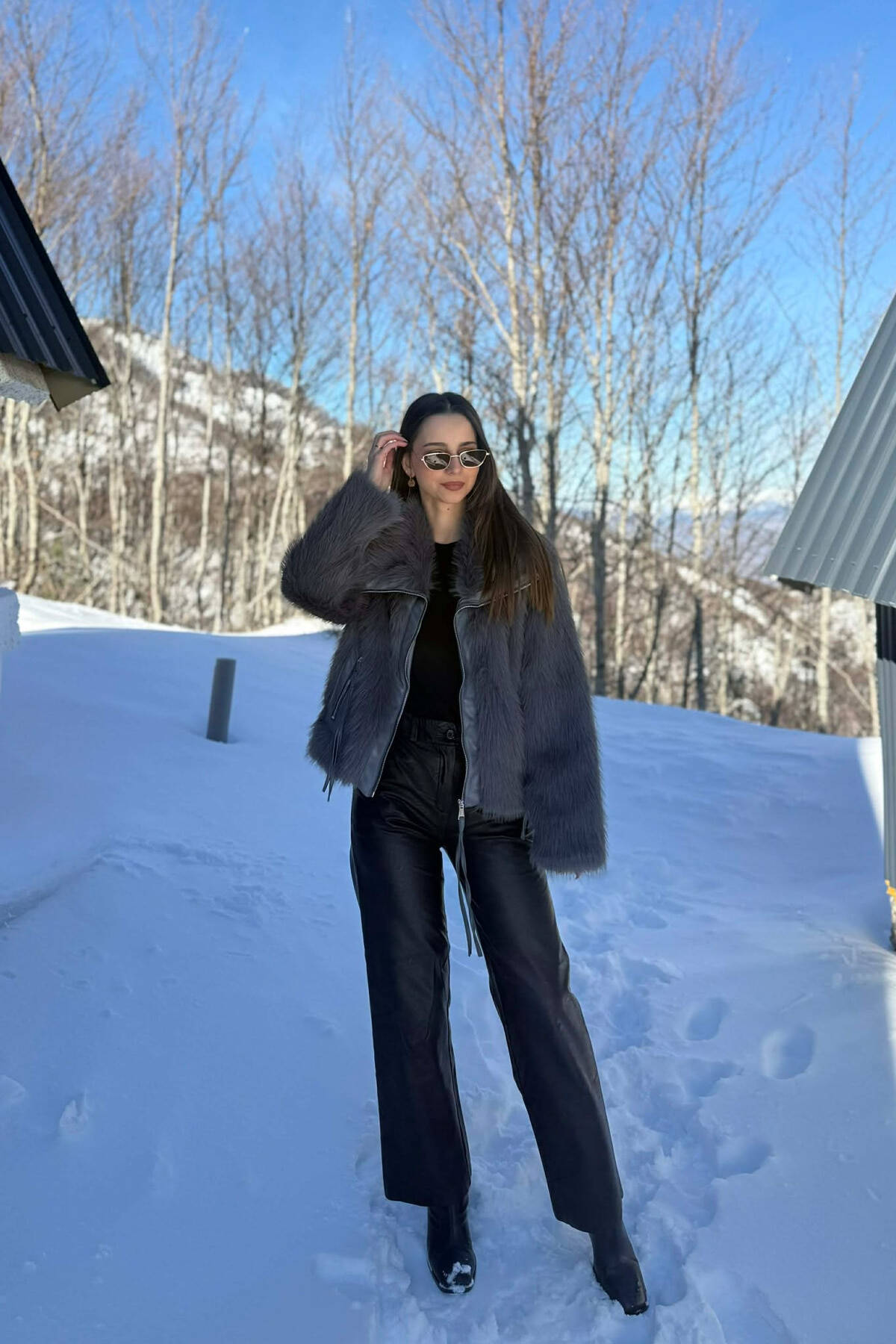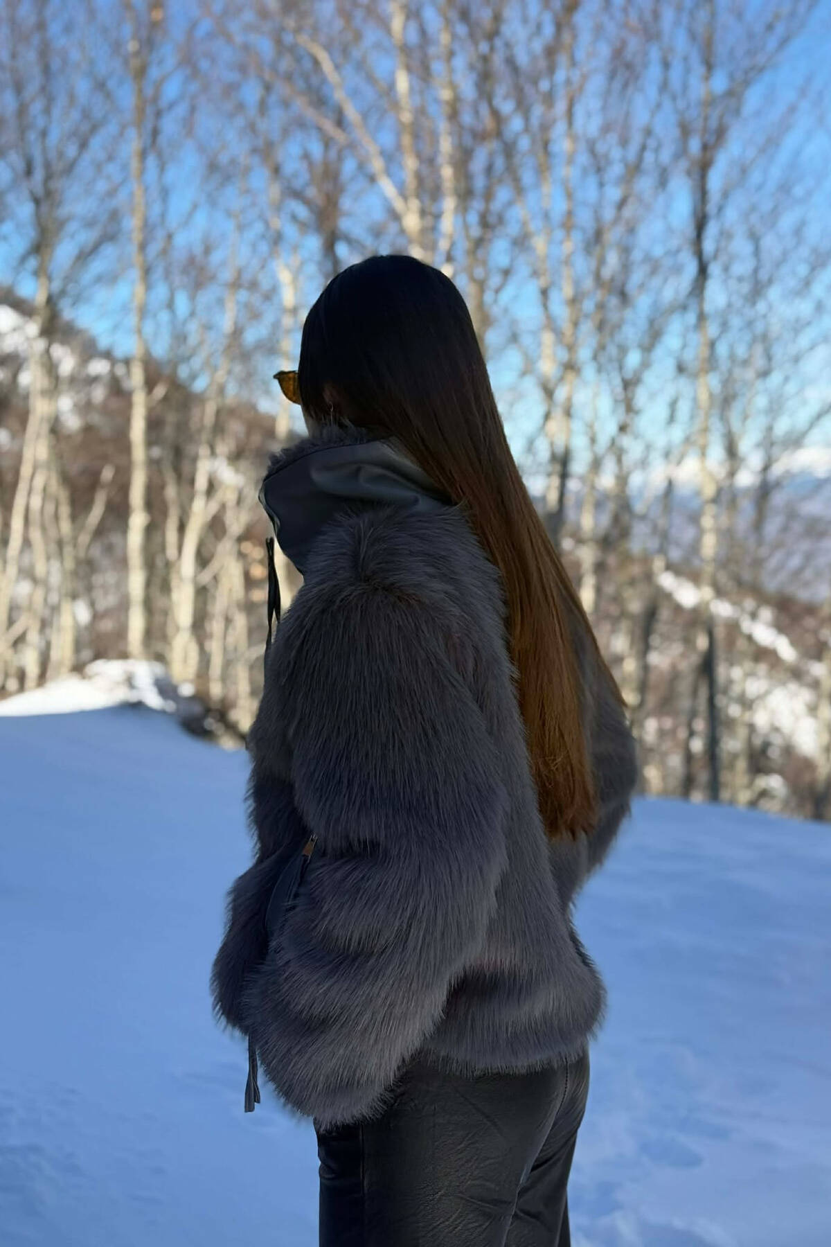 PALLTO E GJATE PELLUSHI ME DETAJIN E RRIPIT PER FEMRA NE NGJYRE KAFE