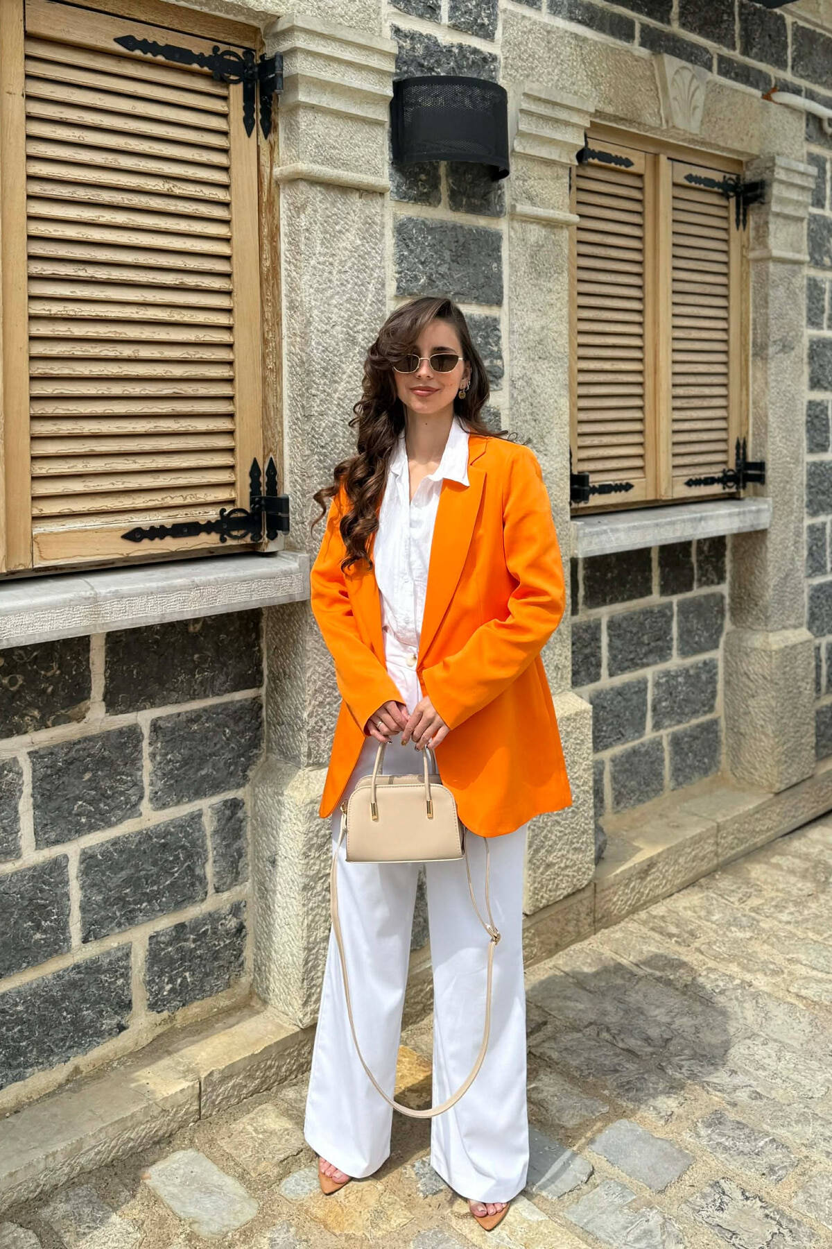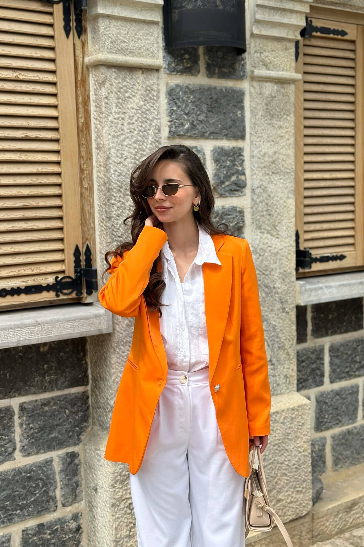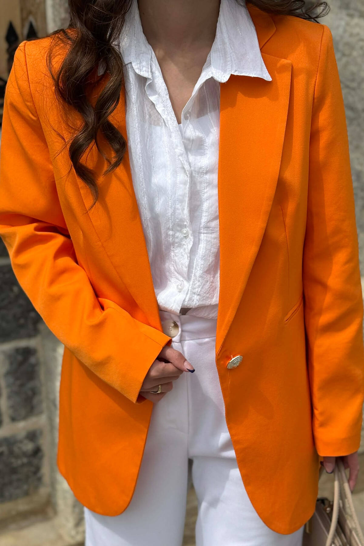 XHAKETE KLASIKE ME NJE BUTON GOLD PER FEMRA NE NGJYRE PORTOKALLI