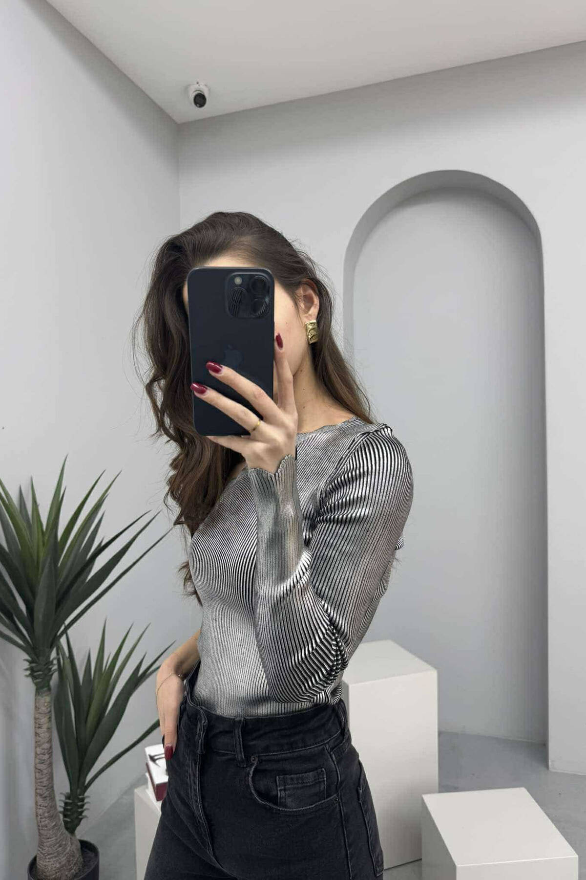 STRIPE DESIGN WOMEN SWEATER GREY/GRI