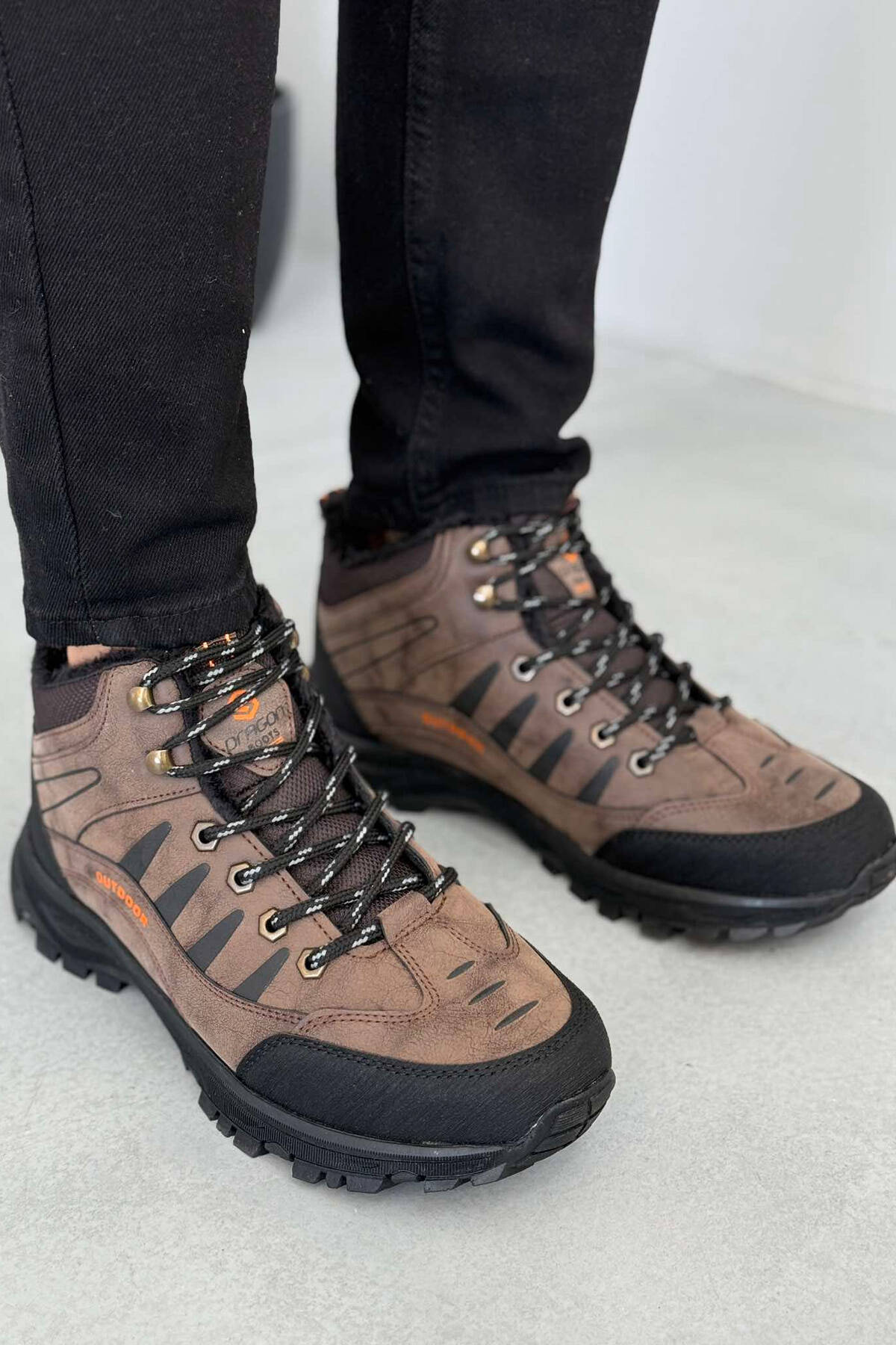 OUTDOOR TRAIL FLUFFY LACING MEN SEMIANKLE SNEAKERS BROWN/KAFE