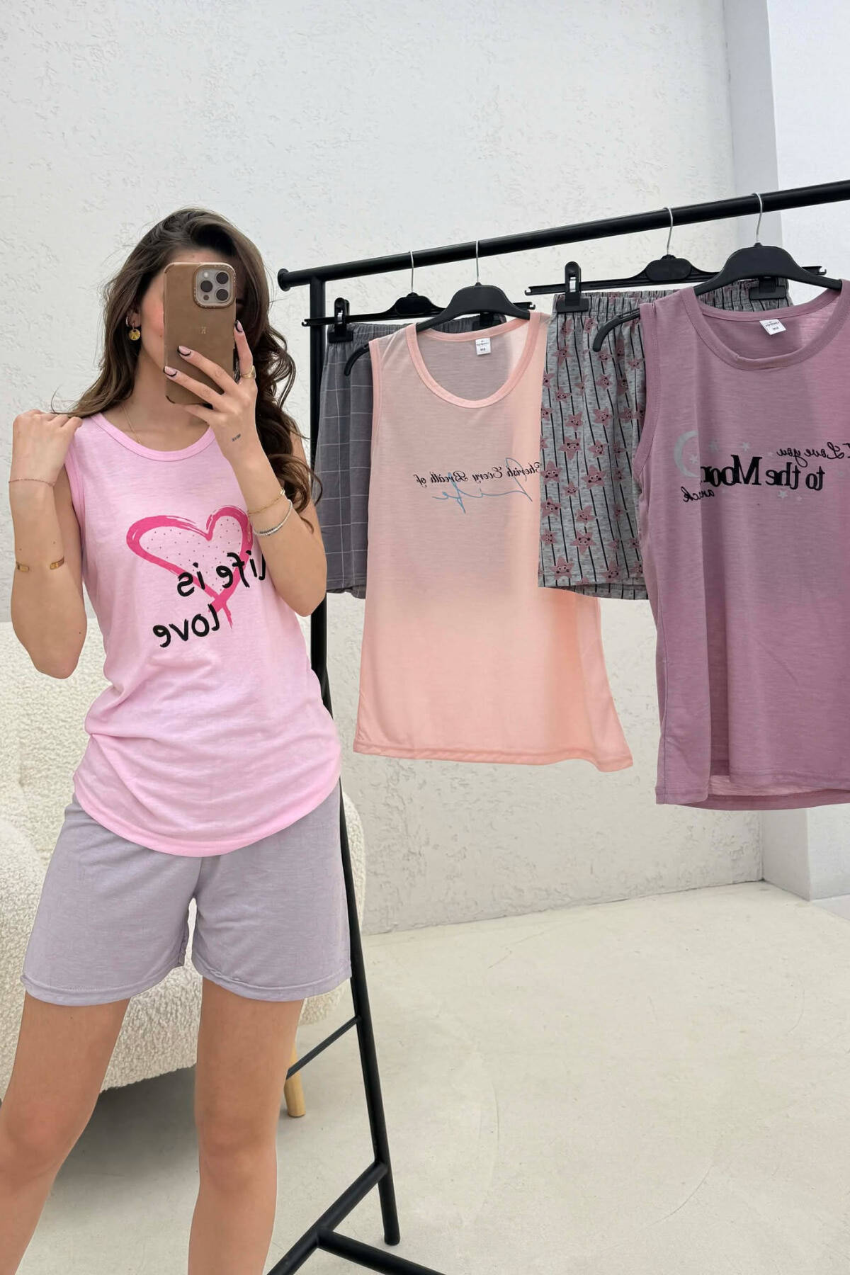 PIZHAME KËMISHË ME DIZAJN ME VIJA+TUTA PËR FEMRA NË NGJYRË ROZË