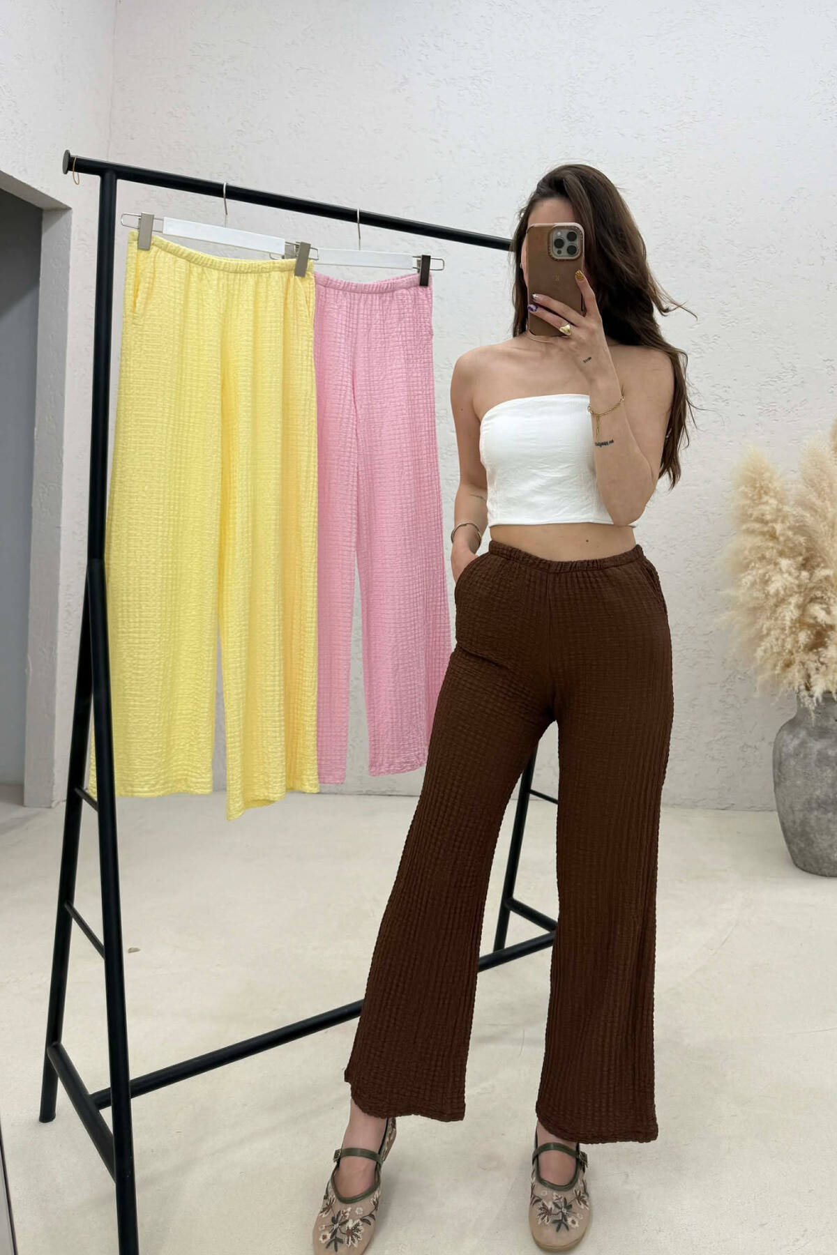 PAKETE 3 PALE PANTALLONA PER FEMRA NE NGJYRE KAFE + ROZE + TE VERDHE