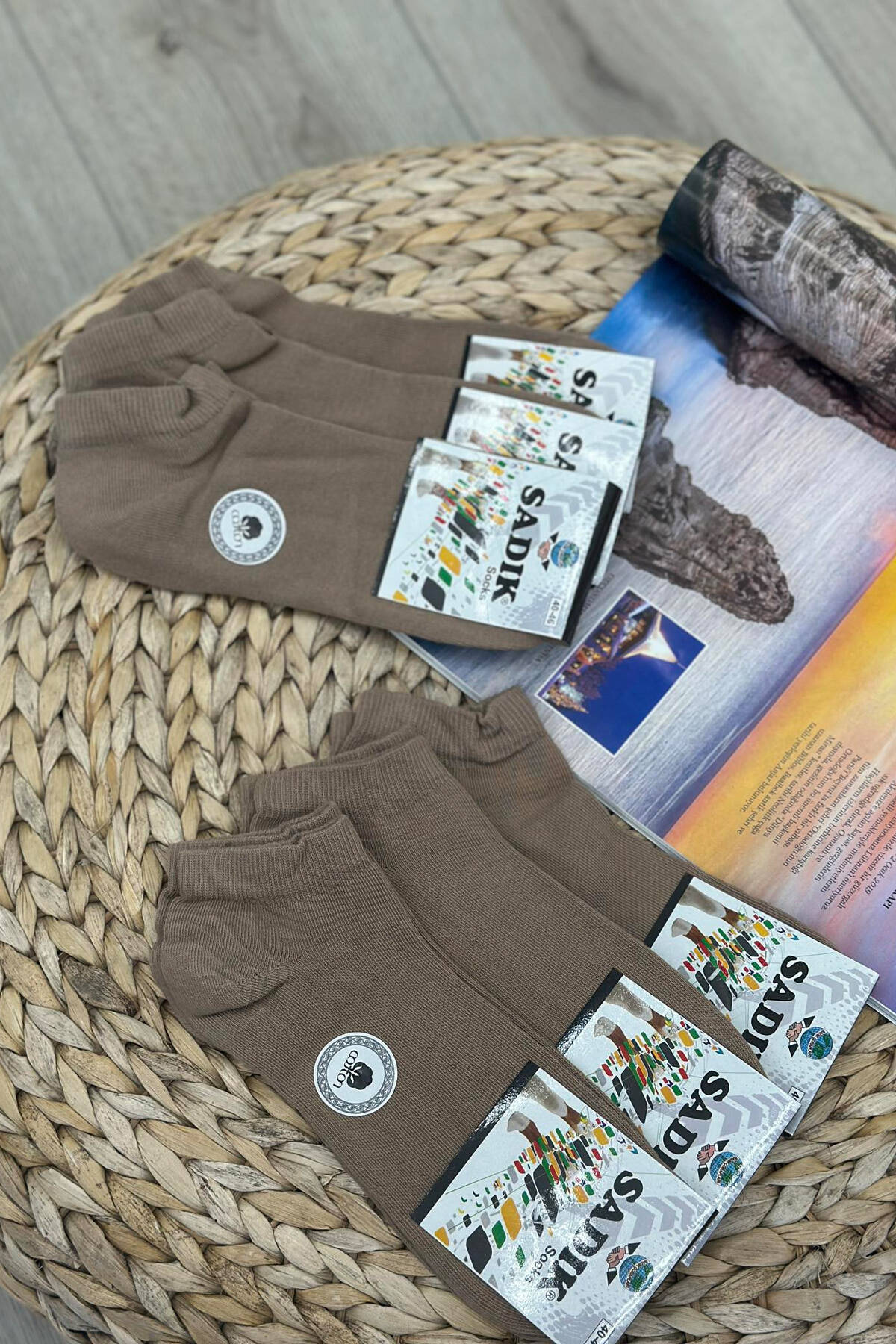 PAKETË ME 6 PALË CORAPE TË SHKURTRA PËR MESHKUJ NË NGJYRËN BEZHË E ERRËT
