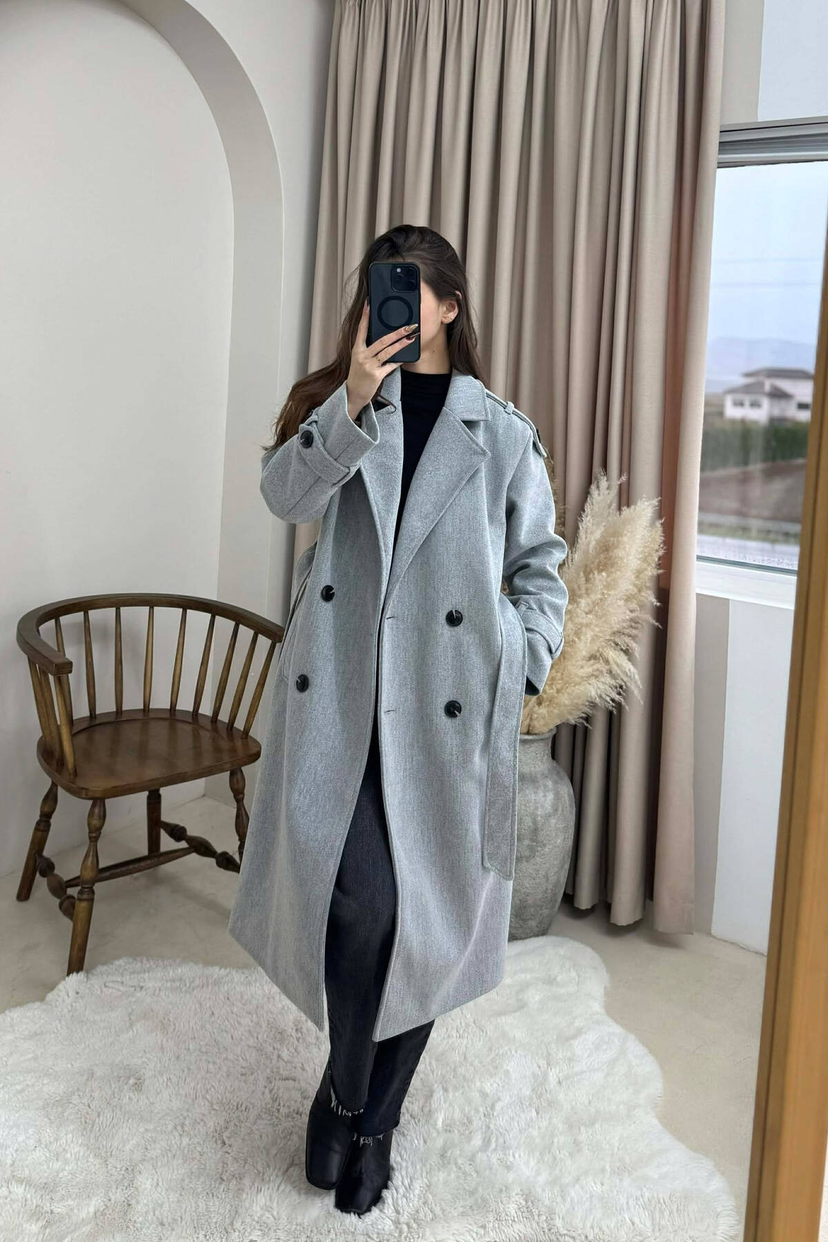 PALLTO E GJATE NJE NGJYRESHE ME DETAJIN E LIDHSEVE PER FEMRA NE NGJYRE GRI TE ZBARDHUR