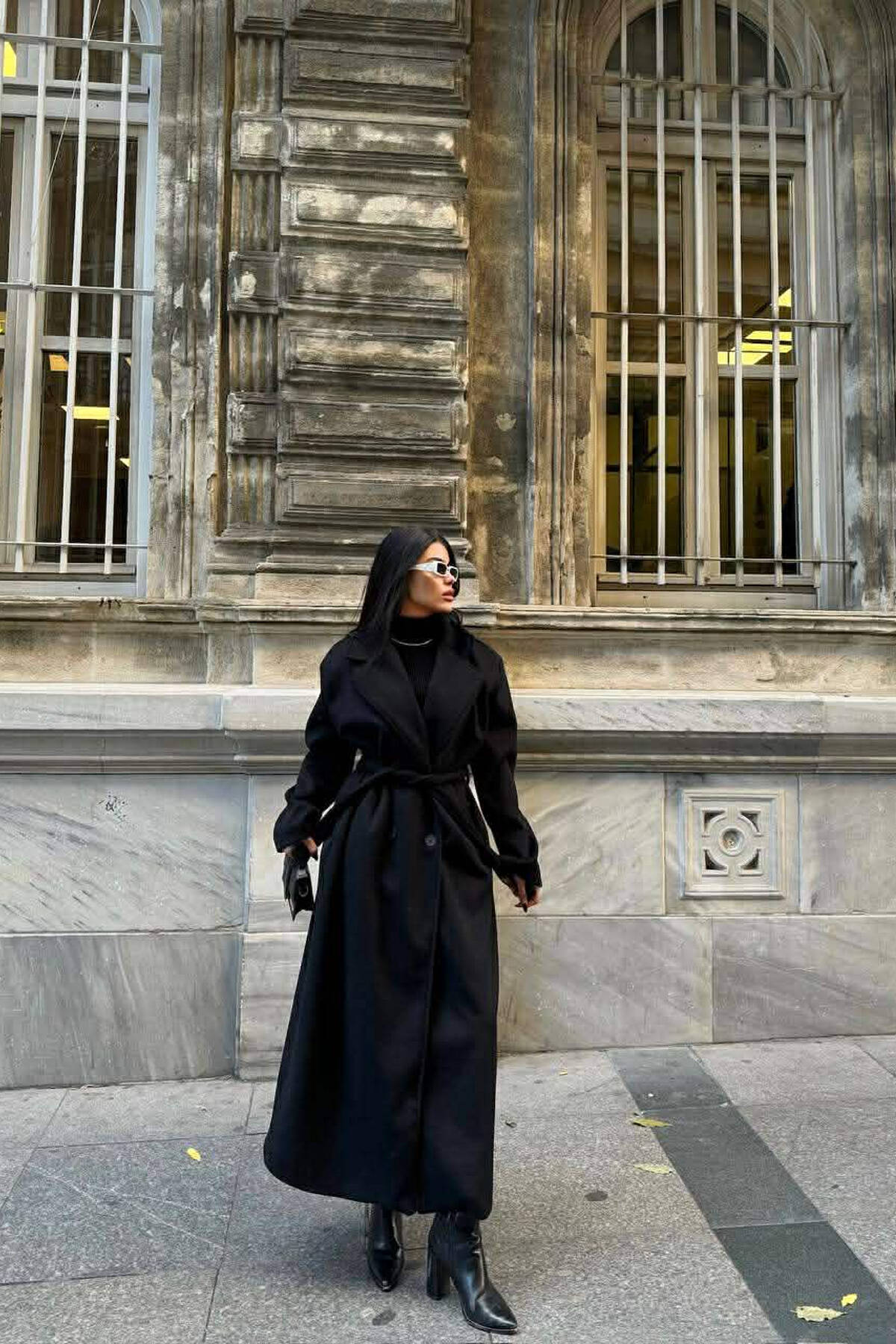 PALLTO E GJATE NJE NGJYRESHE ME LIDHESE PER FEMRA NË NGJYRE TE ZEZE