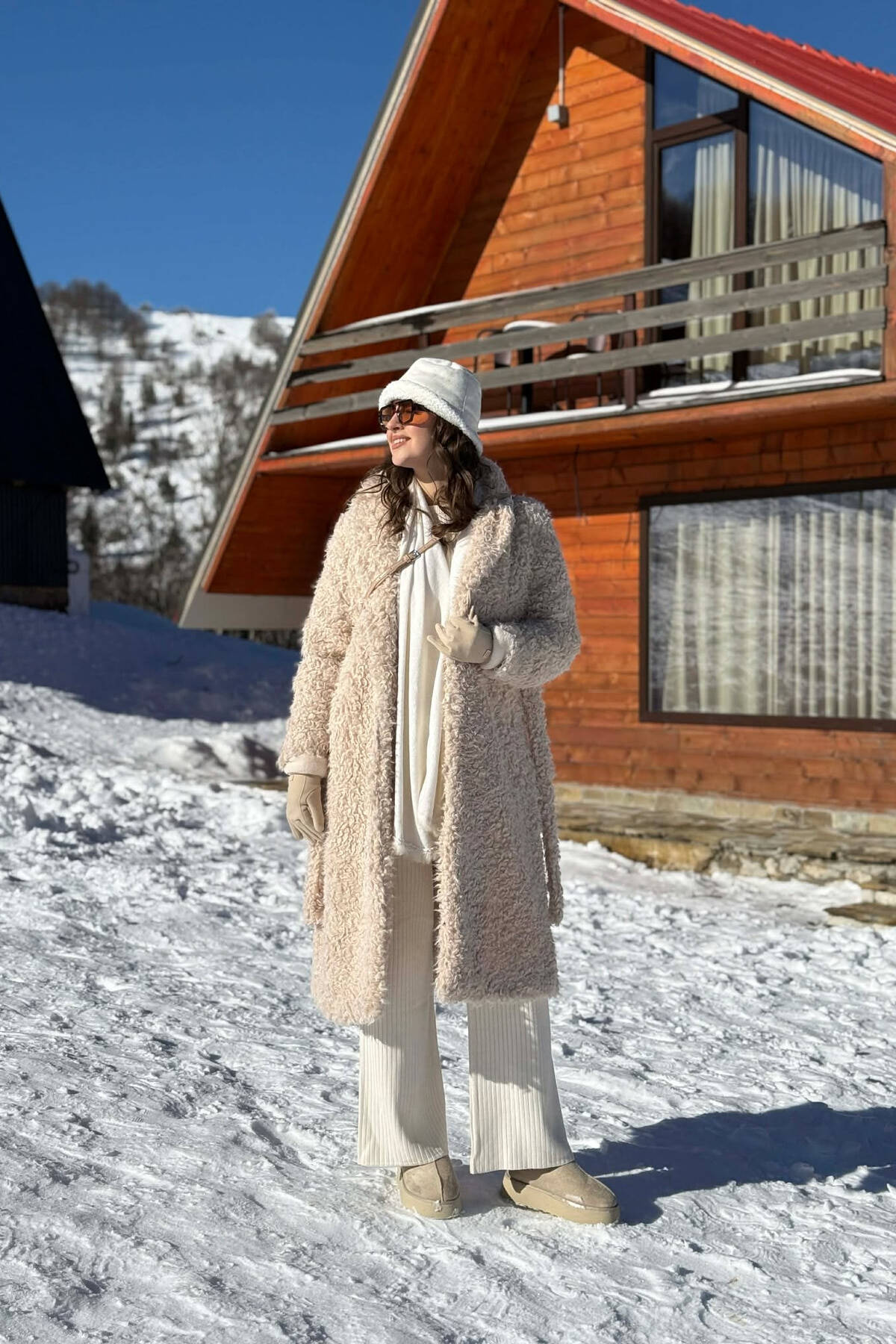 PALLTO NJE NGJYRESHE PELLUSHI PER FEMRA NE NGJYRE KREM