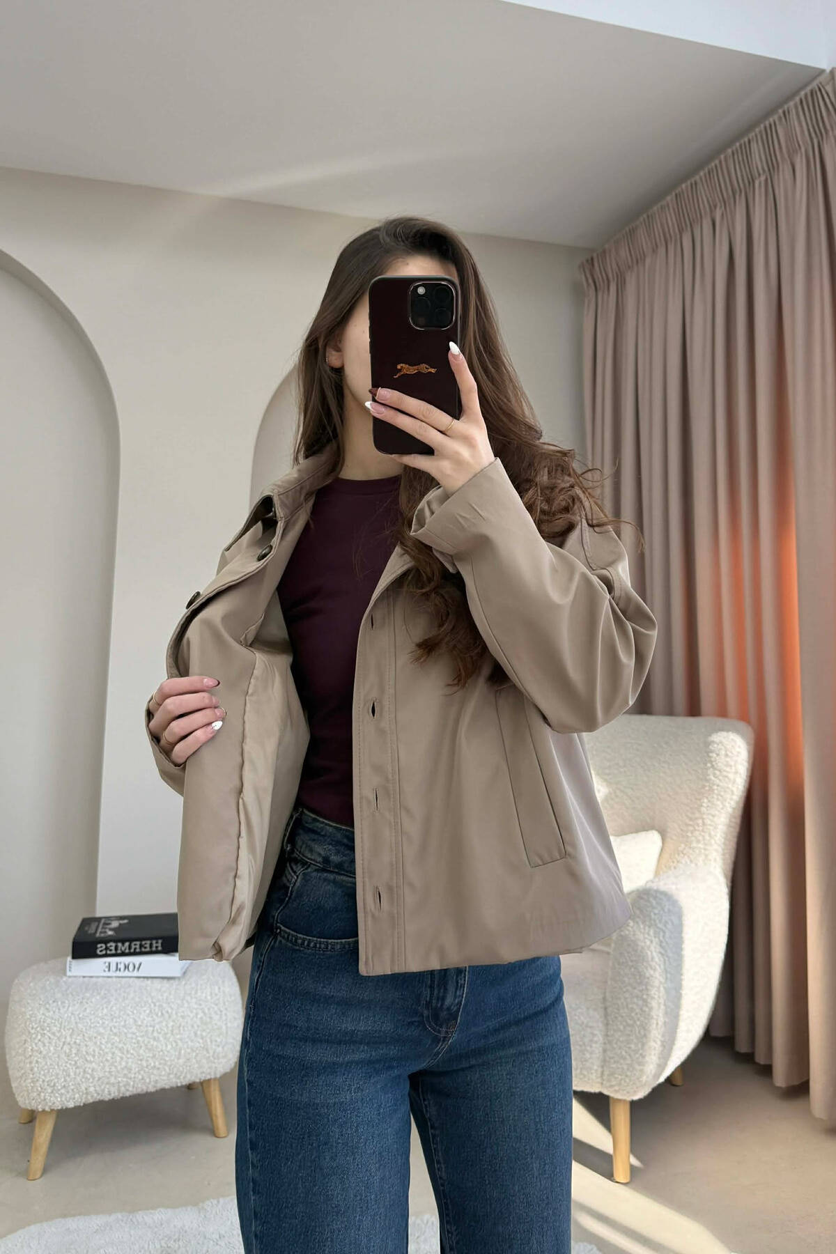 XHAKETE NJE NGJYRESHE ME BUTONA PER FEMRA NE NGJYRE KAFE