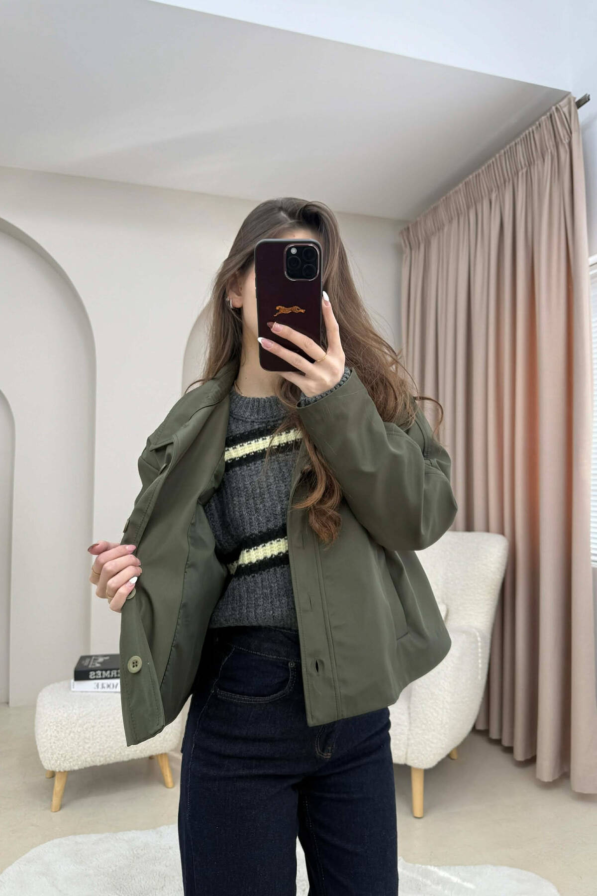 PALLTO E SHKURTER NJE NGJYRESHE ME BUTONA PER FEMRA NE NGJYRE JESHILE
