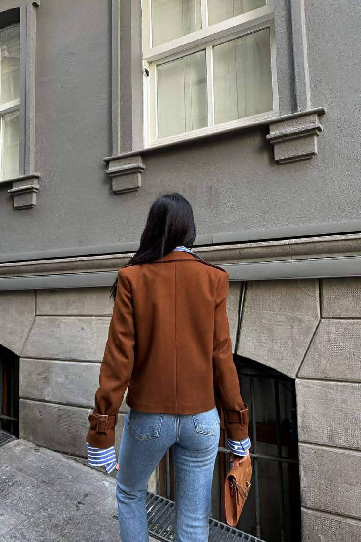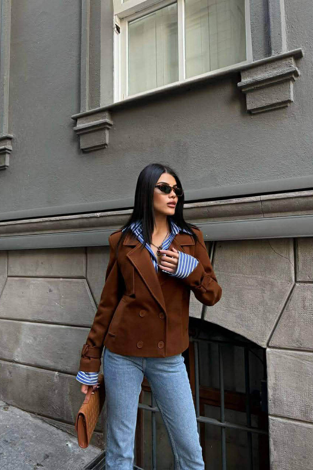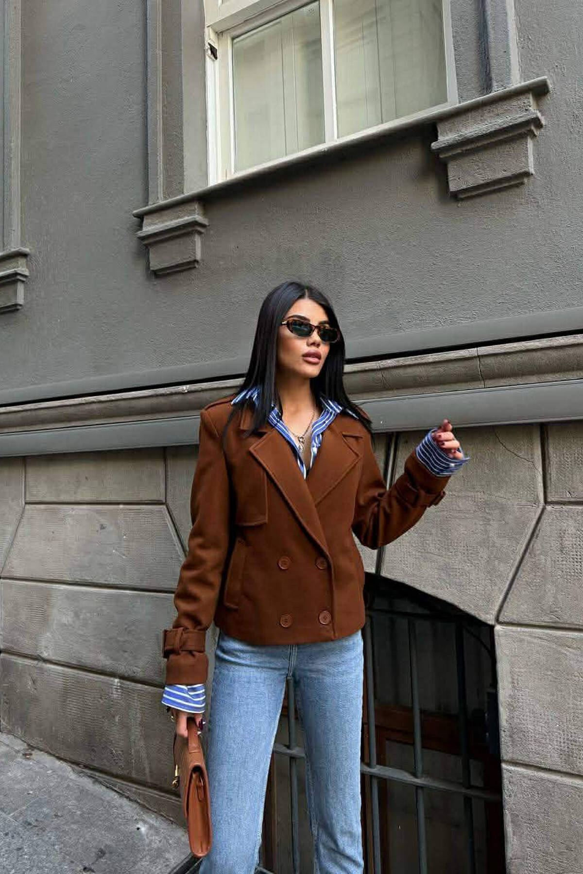 PALLTO E SHKURTER NJE NGJYRESHE PER FEMRA NE NGJYRE KAFE