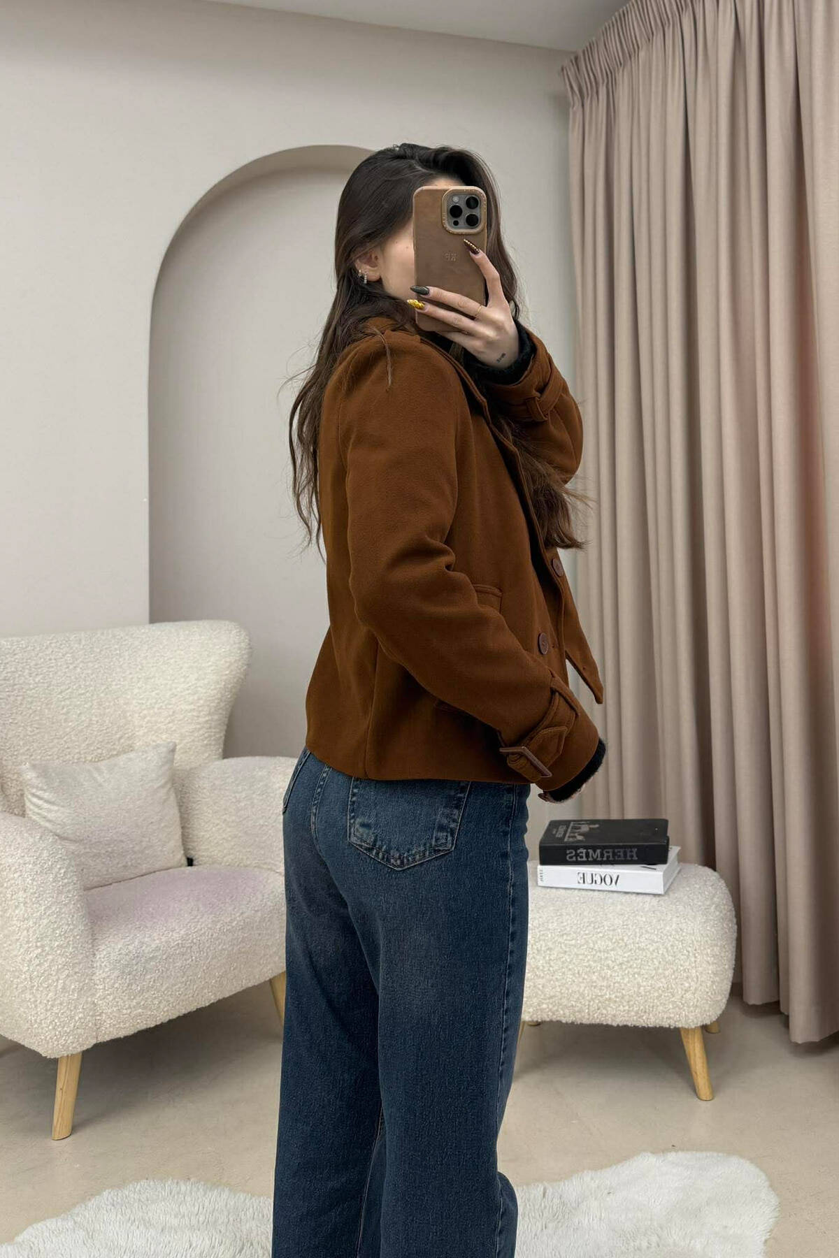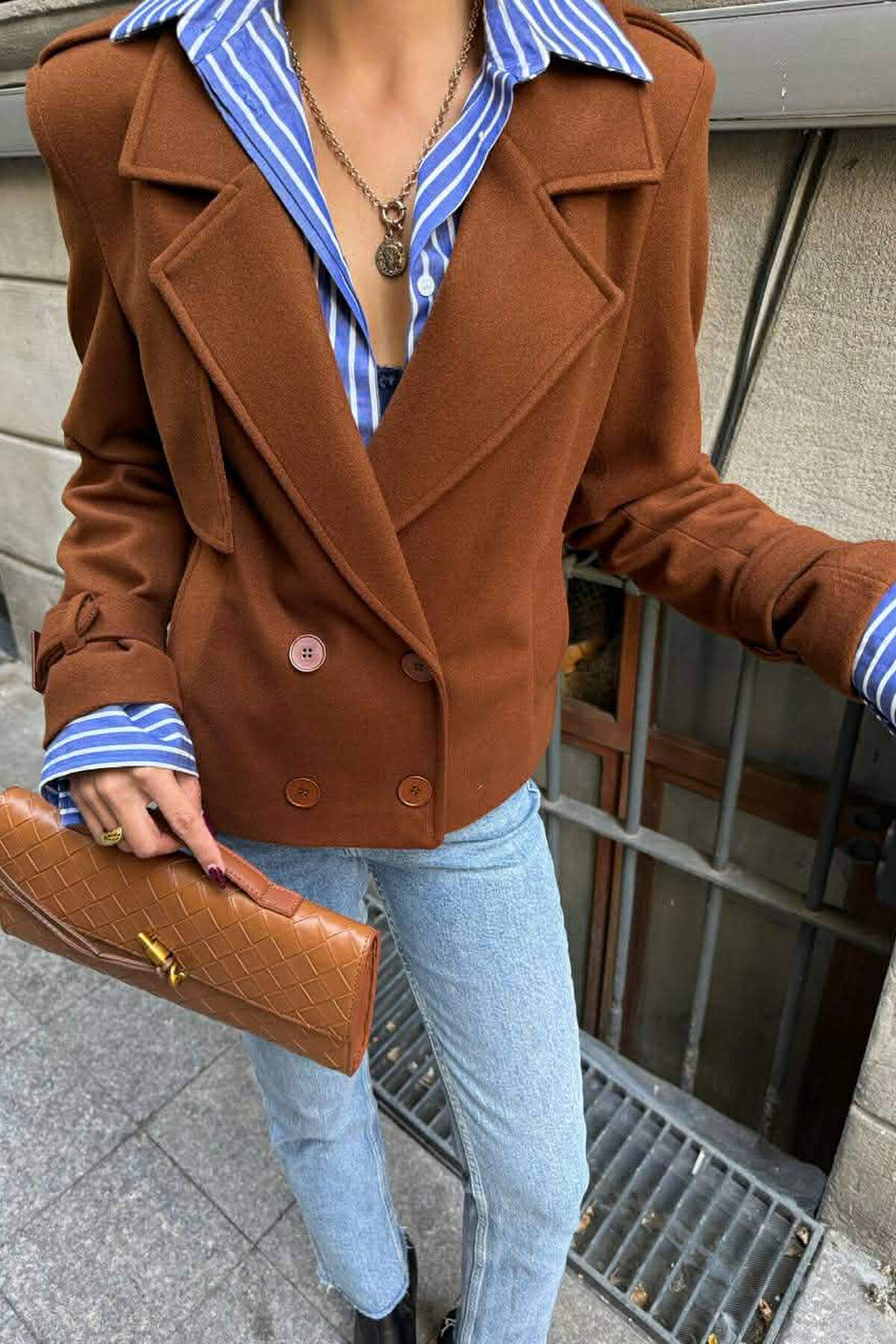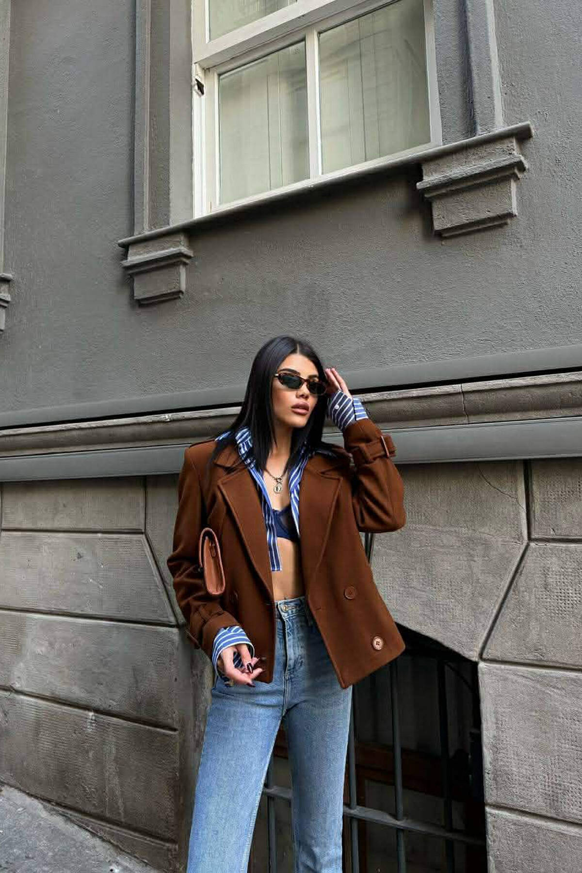 PALLTO E SHKURTER NJE NGJYRESHE PER FEMRA NE NGJYRE KAFE