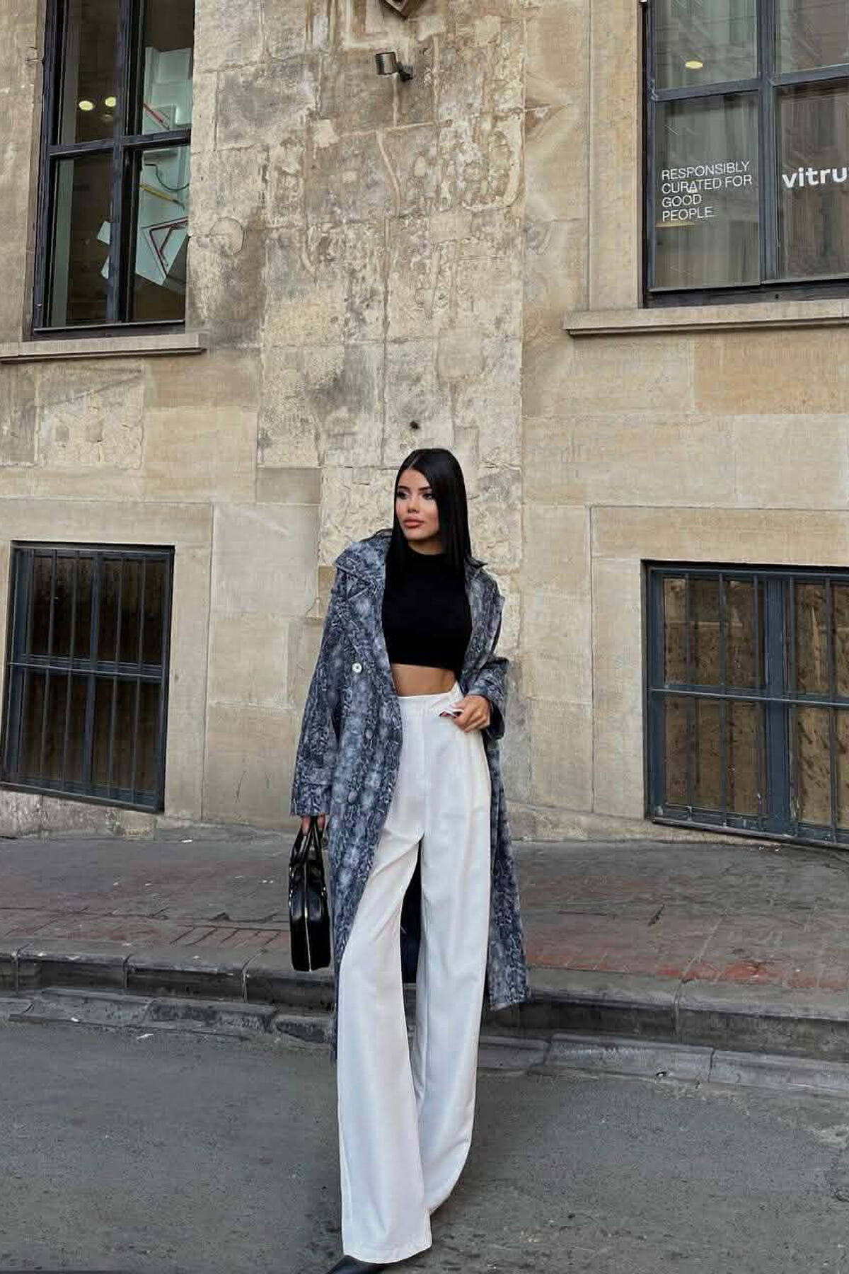 PALLTO ME DIZAJN GJARPERI DHE ME DETAJIN E RRIPIT PER FEMRA NE NGJYRE GRI