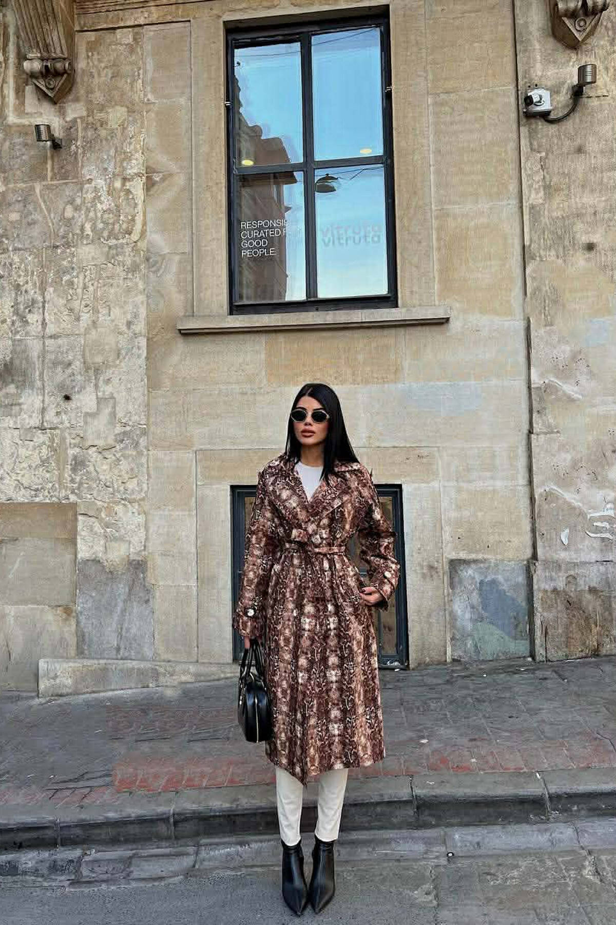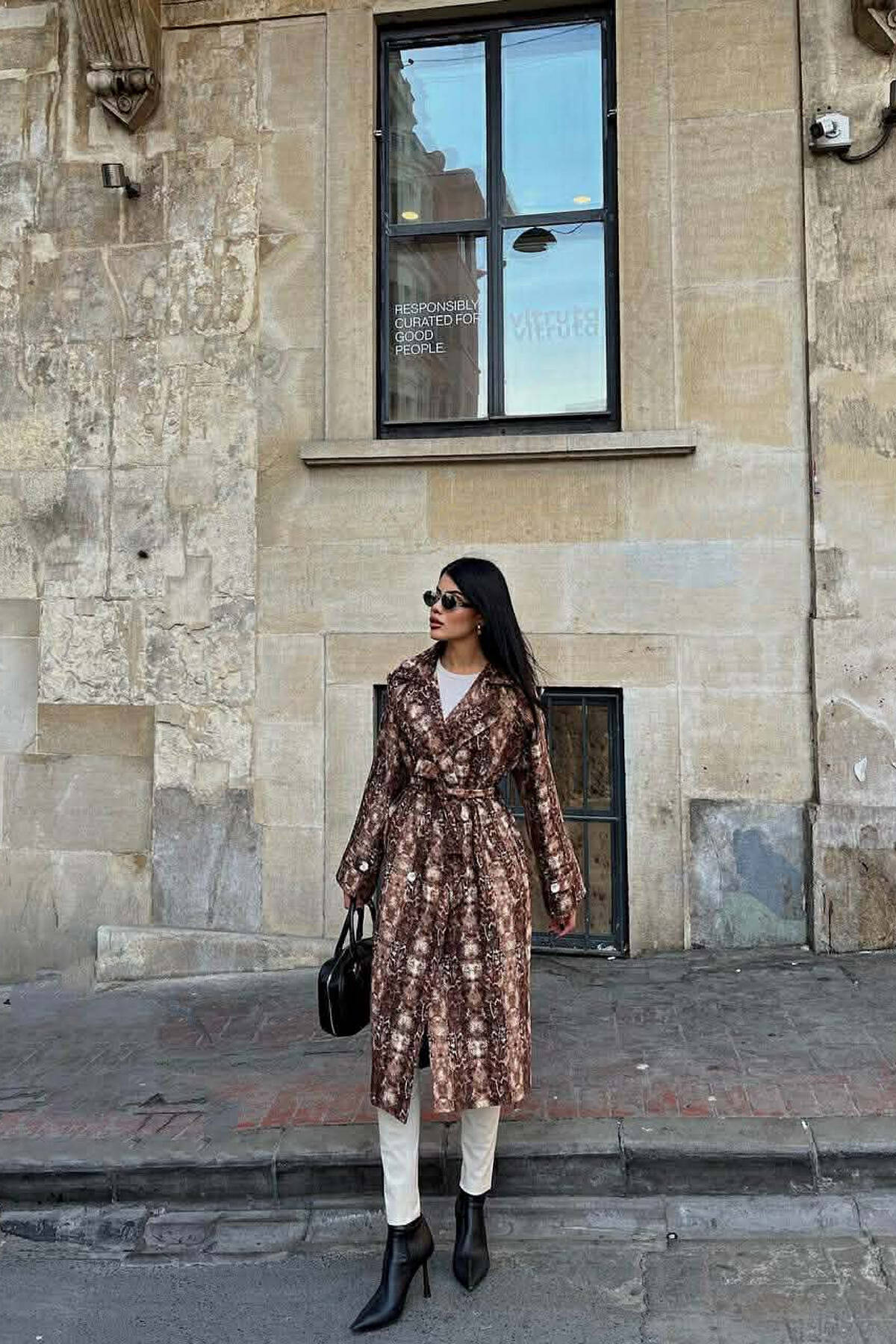 PALLTO ME DIZAJN GJARPERI DHE ME DETAJIN E RRIPIT PER FEMRA NE NGJYRE KAFE