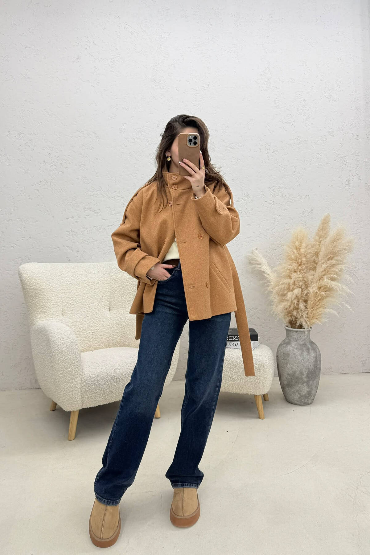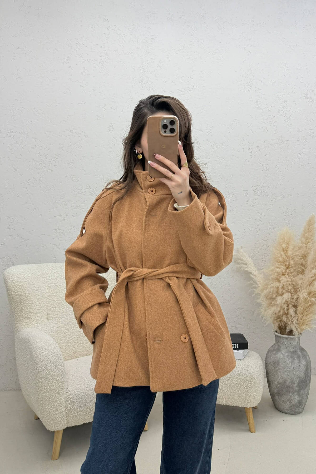 PALLTO NJE NGJYRESHE LEKURE ME KOPSA DHE ME DETAJIN E RRIPIT NE NGJYRE KAFE