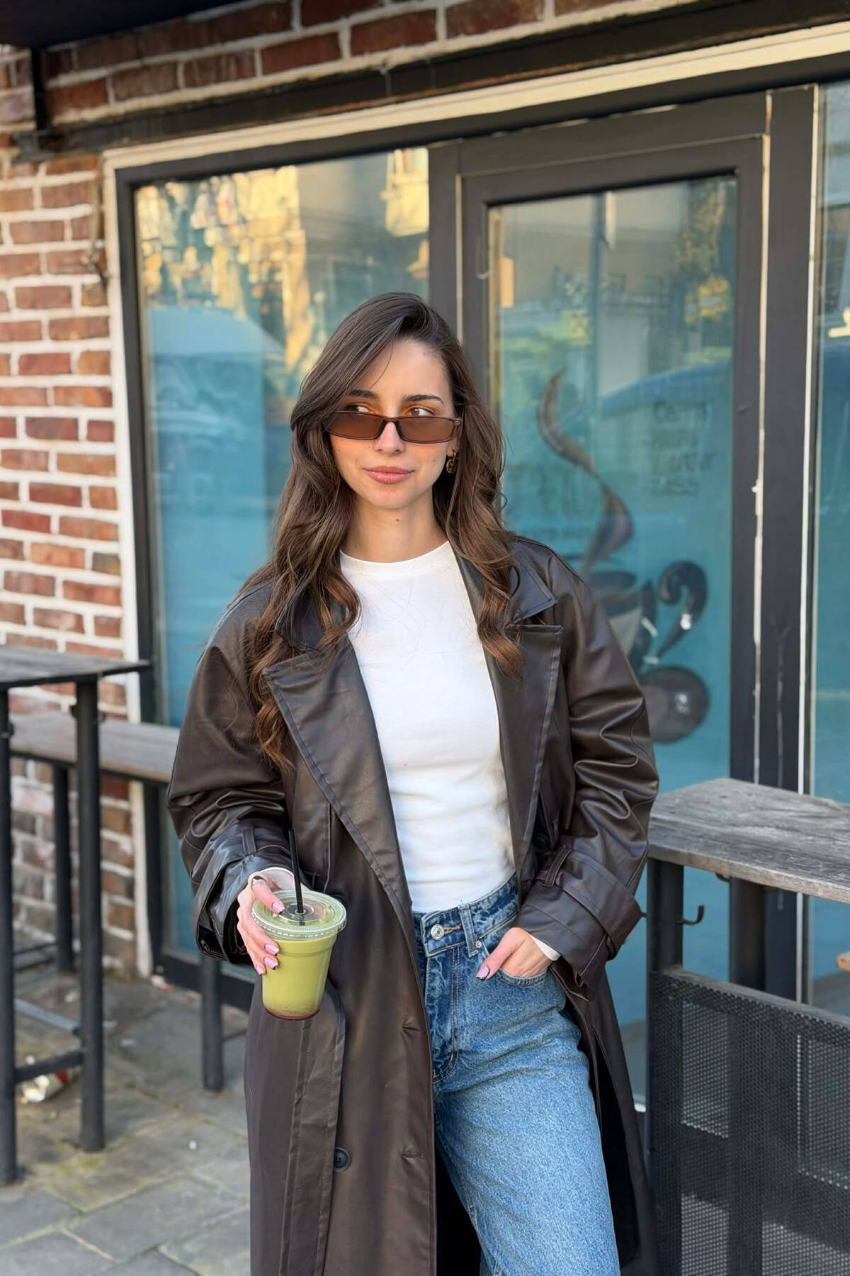 PALLTO NJE NGJYRESHE LEKURE ME KOPSA DHE ME DETAJIN E RRIPIT NE NGJYRE KAFE