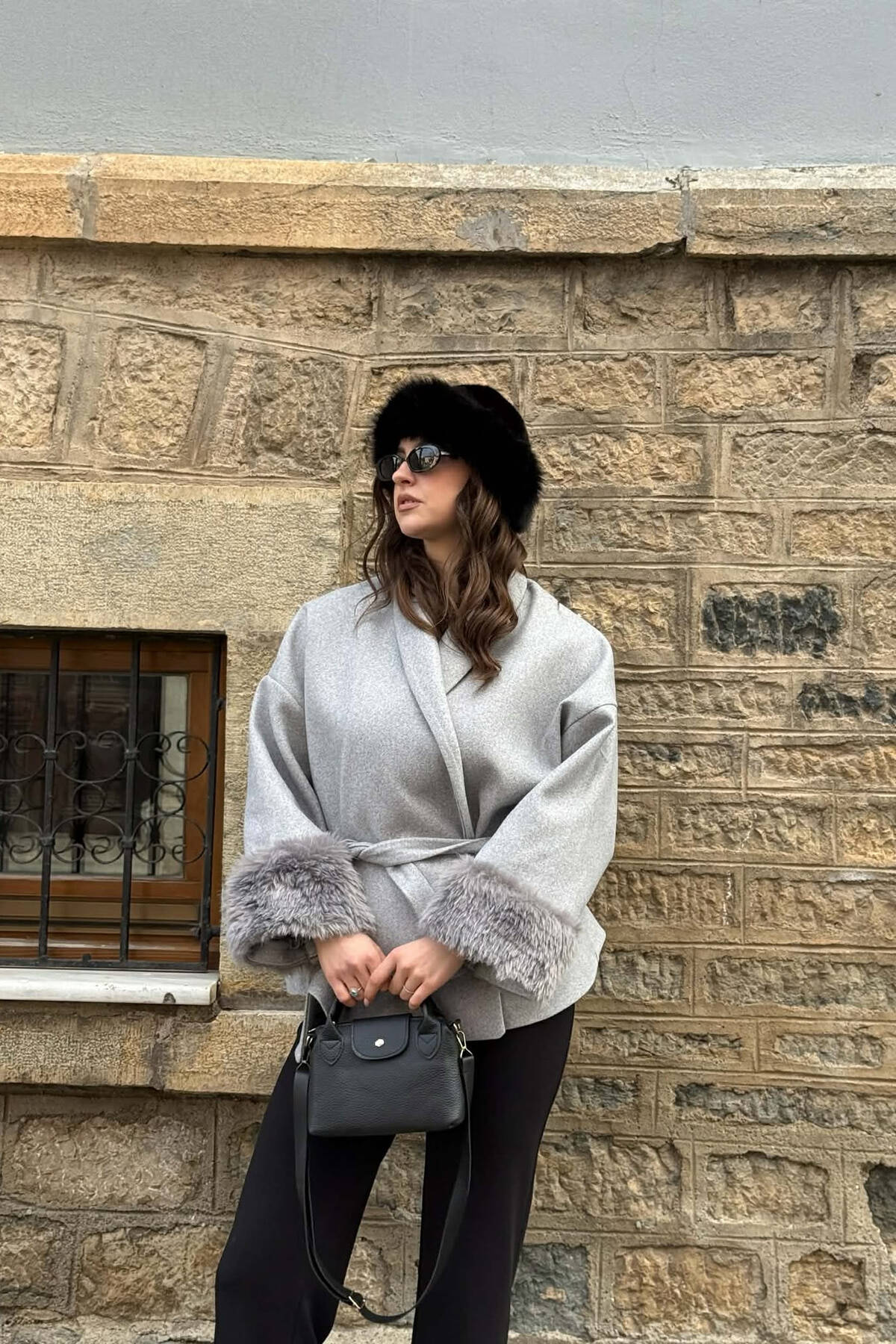 PALLTO NJE NGJYRESHE ME DETAJE GEZOFI TEK MENGET PER FEMRA NE NGJYRE GRI TE ZBARDHUR