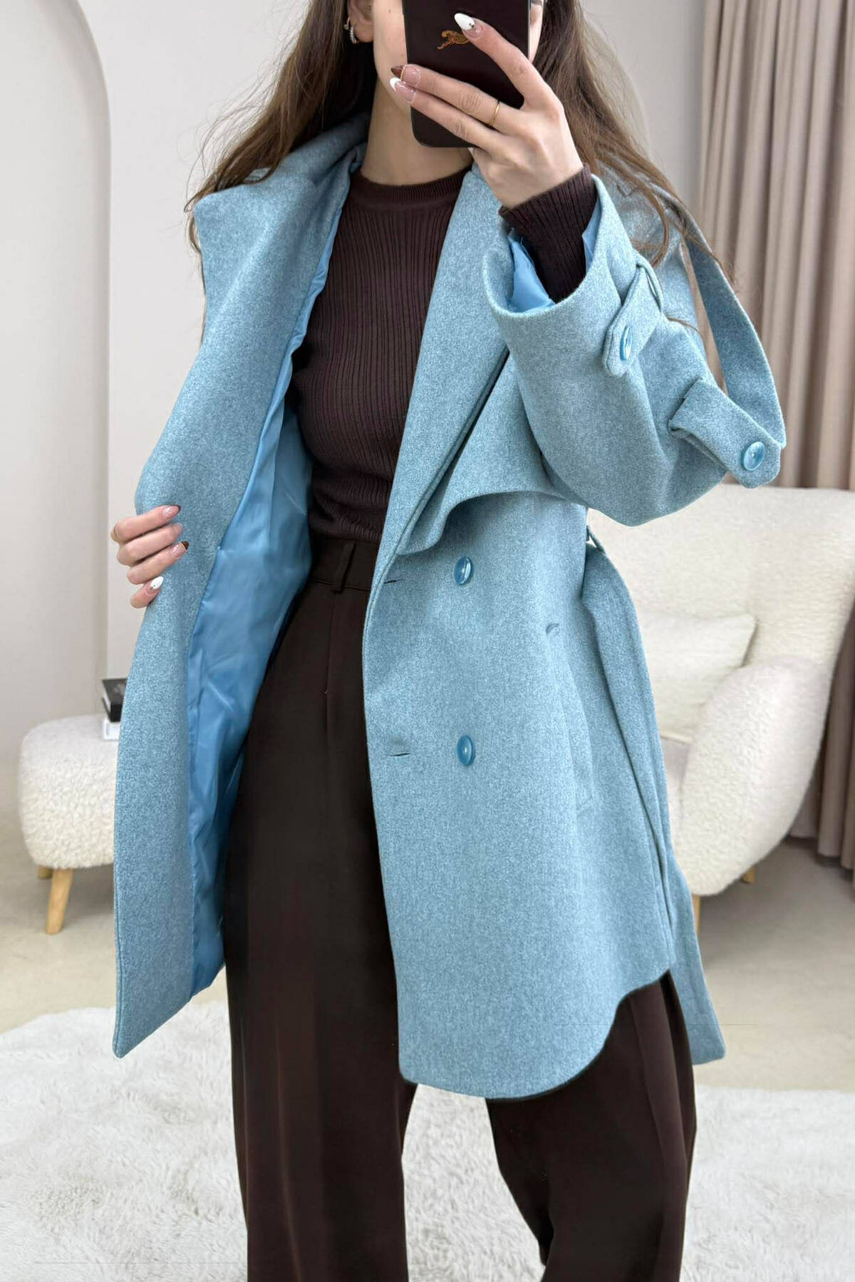 PALLTO NJE NGJYRESHE ME DETAJIN E RRIPIT PER FEMRA NE NGJYRE BLU TE ZBARDHUR