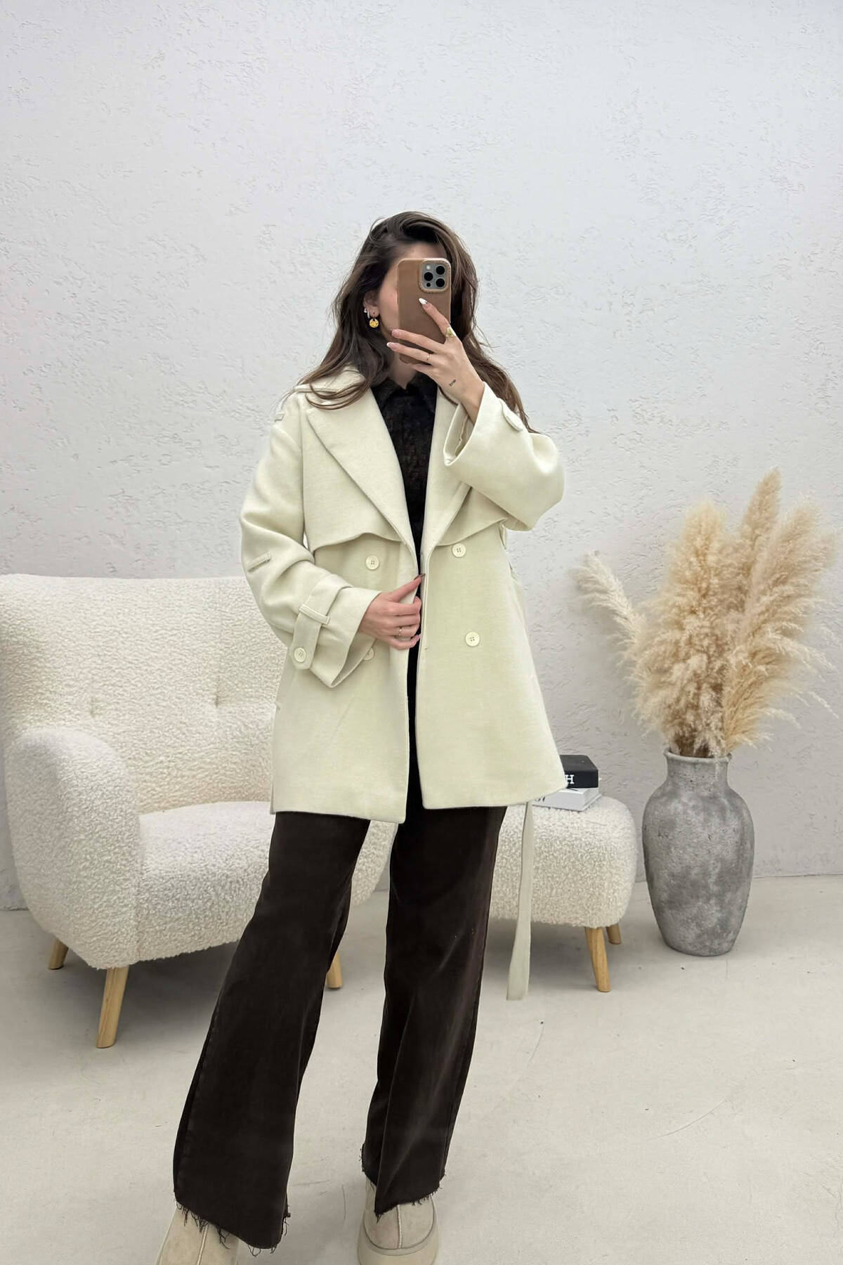 PALLTO NJE NGJYRESHE ME DETAJIN E RRIPIT PER FEMRA NE NGJYRE KREM