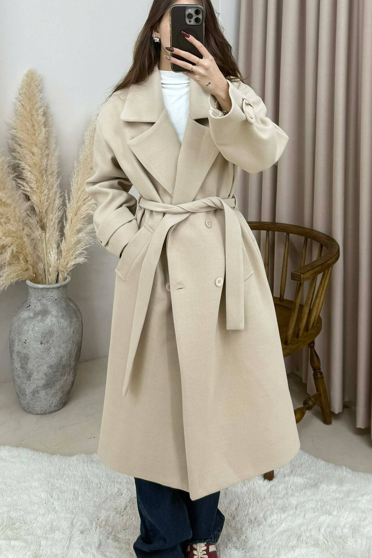 PALLTO E GJATE NJE NGJYRESHE ME DETAJIN E LIDHSEVE PER FEMRA NE NGJYRE KREM