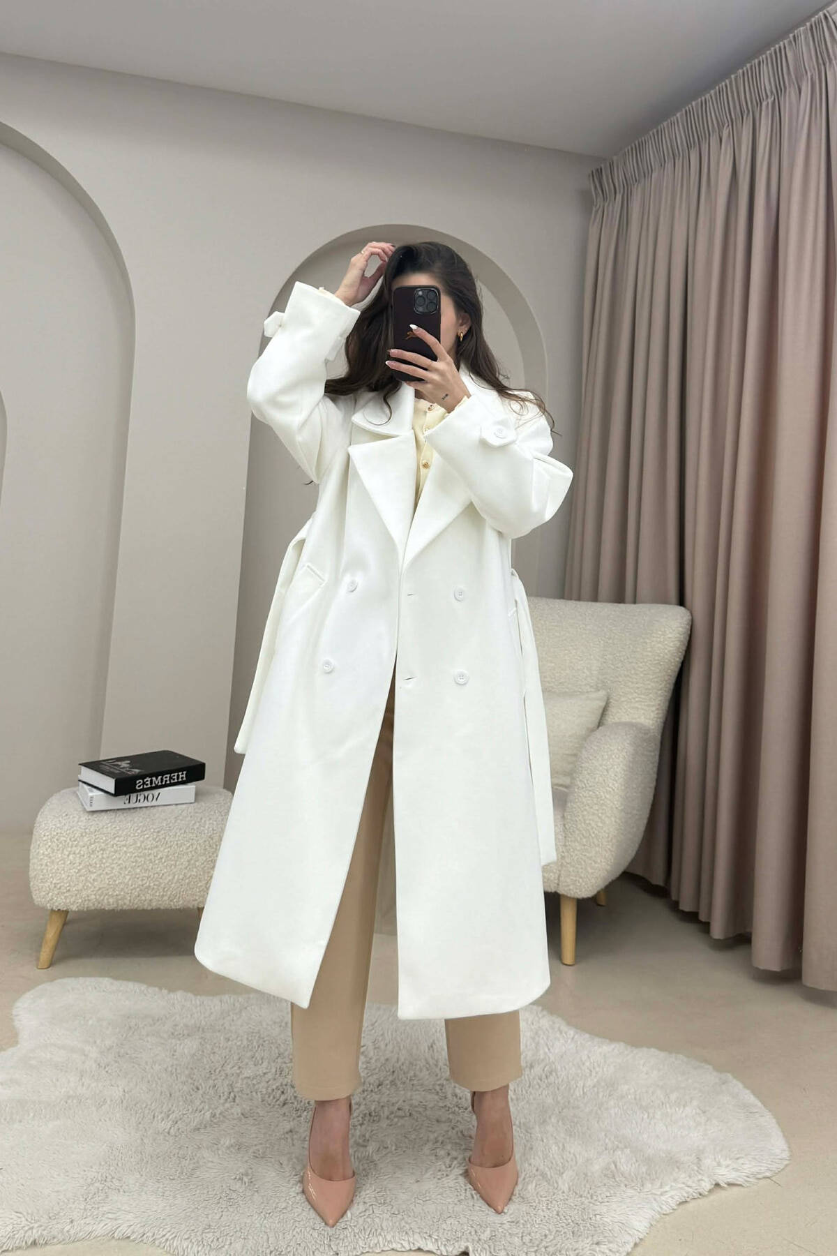 PALLTO NJE NGJYRESHE ME DETAJIN E RRIPIT PER FEMRA NE NGJYRE TE BARDHE ANTIKE