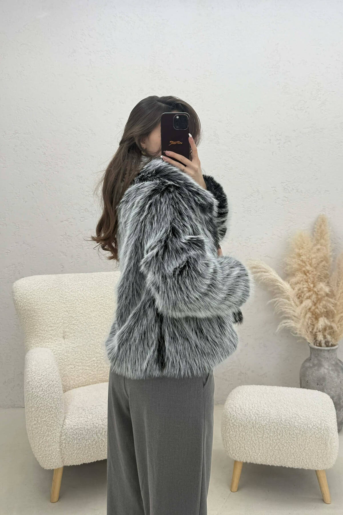 PALLTO NJE NGJYRESHE ME GEZOF PER FEMRA NE NGJYRE TE ZEZE DHE GRI