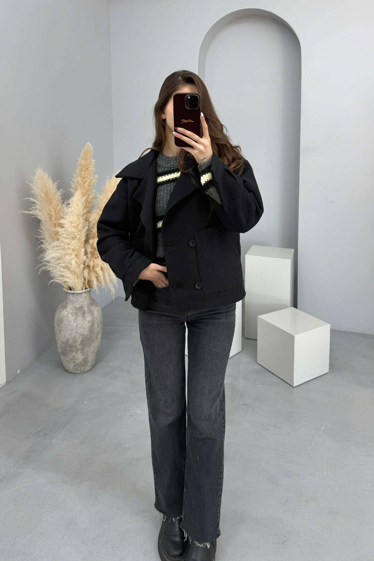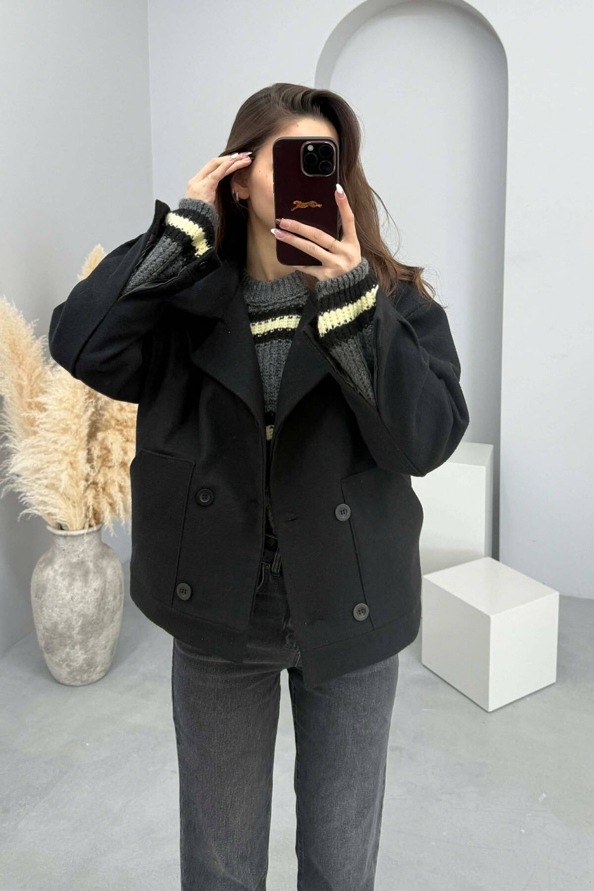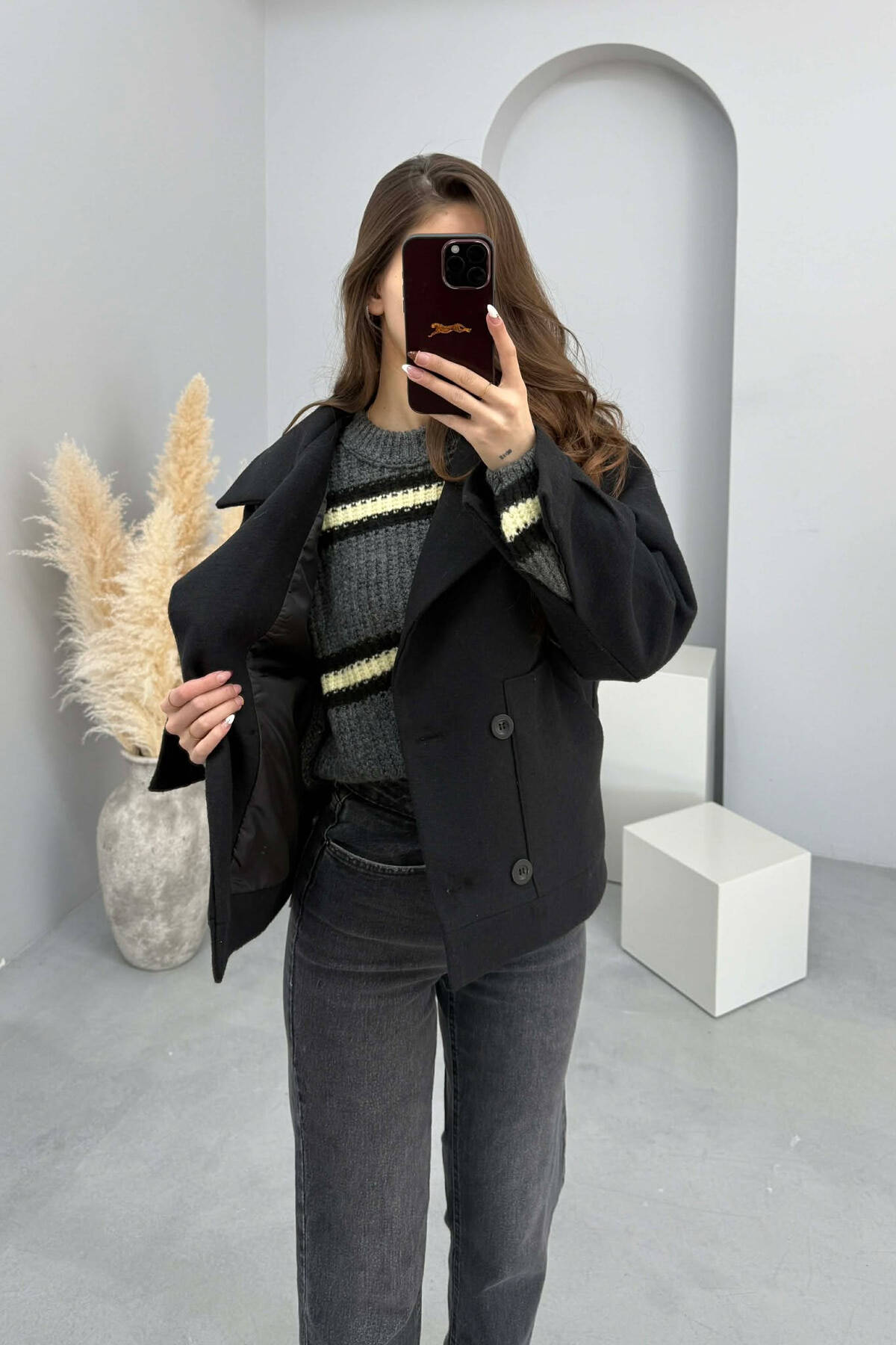 PALLTO NJE NGJYRESHE ME JAKE V DHE BUTONA PER FEMRA NE NGJYRE TE ZEZE