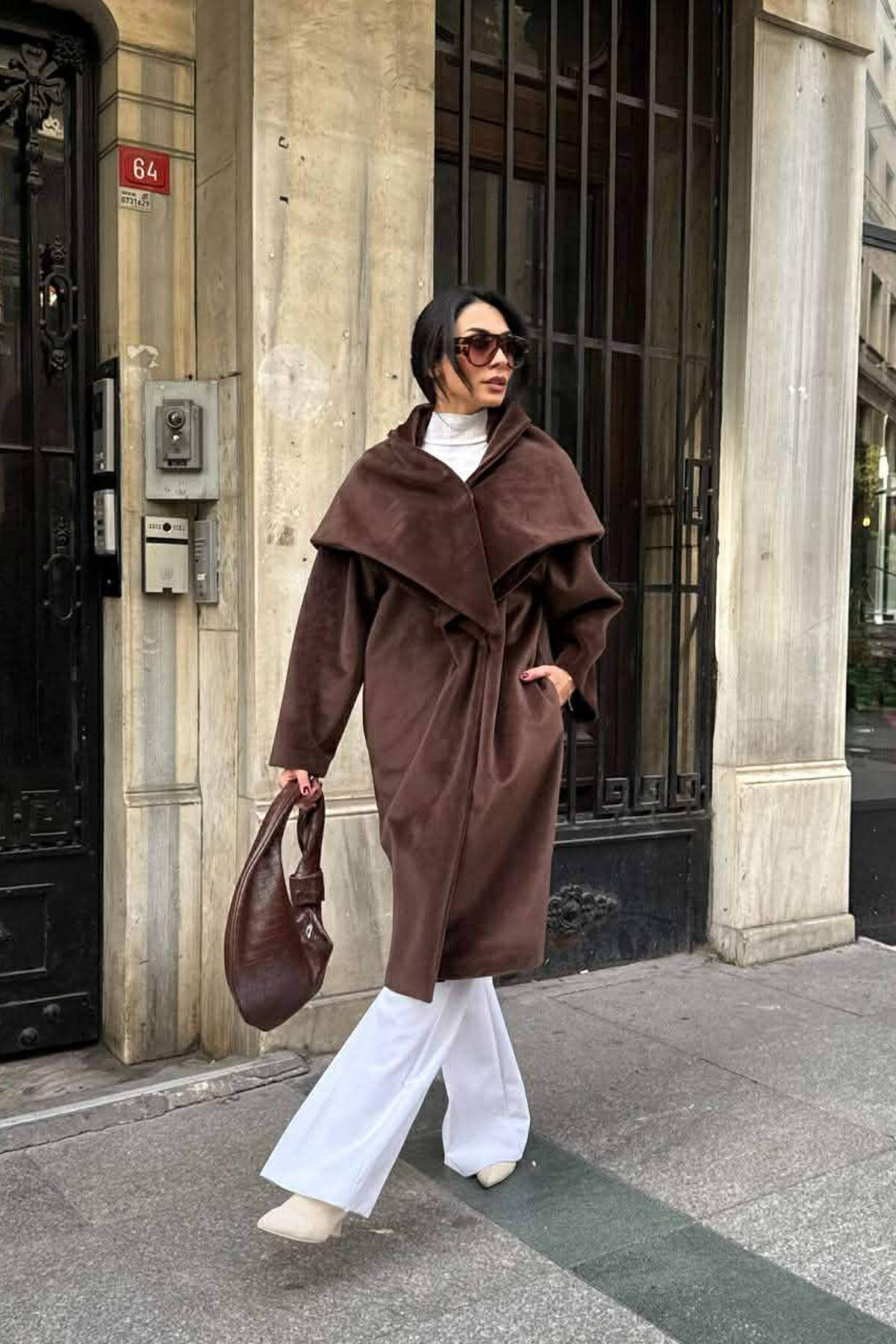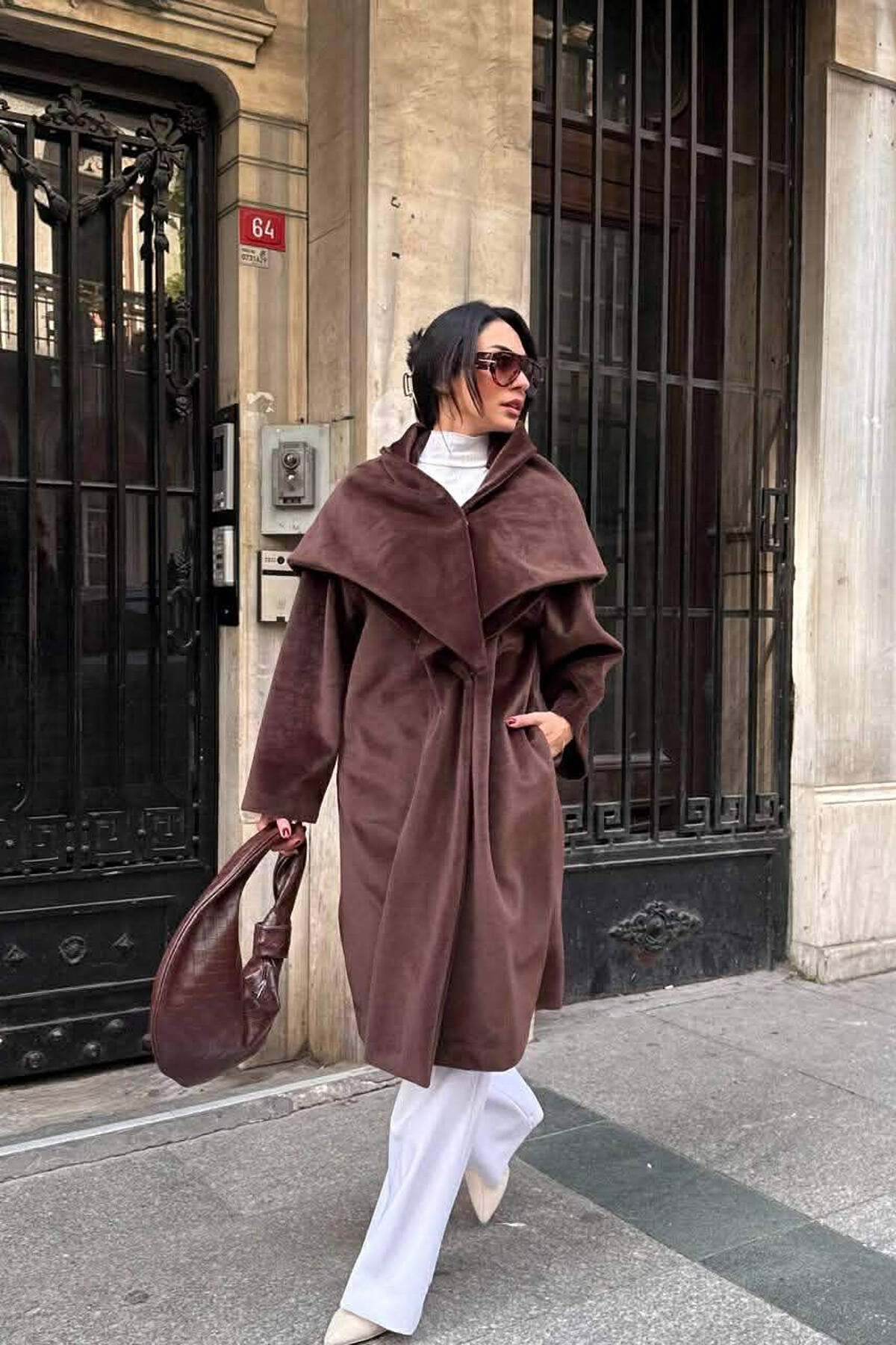PALLTO NJE NGJYRESHE ME SHALL PER FEMRA NE NGJYRE KAFE TE ERRET