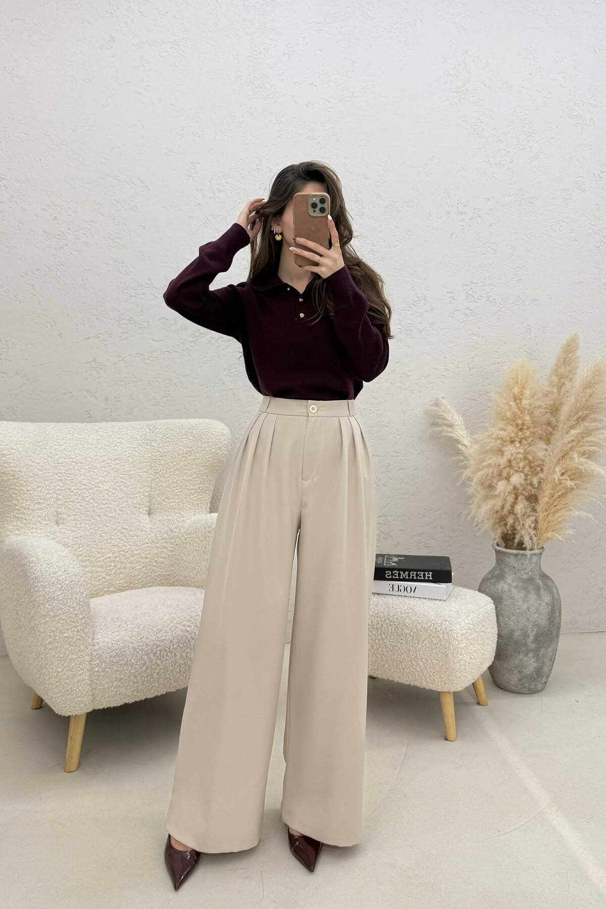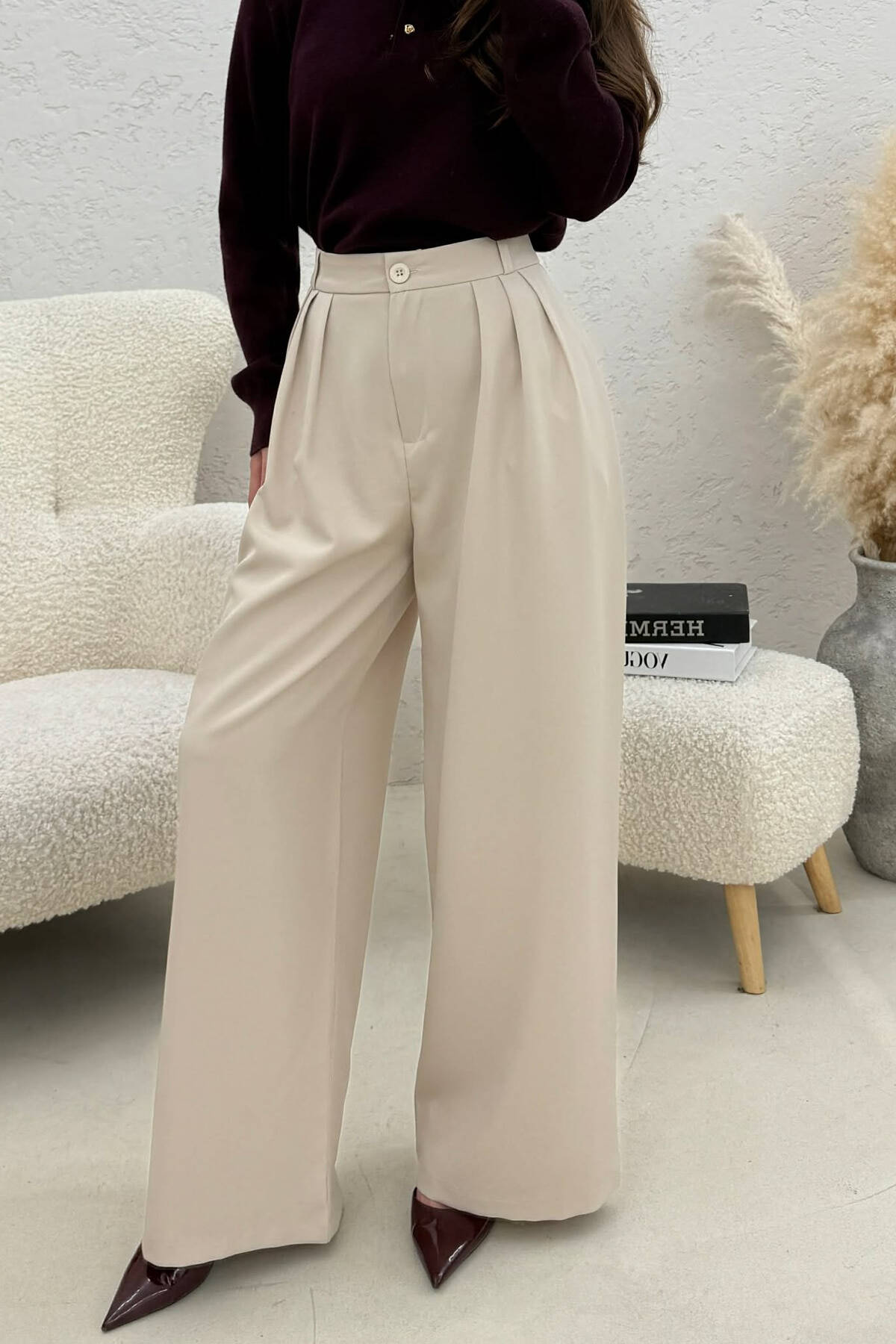 PANTALLONA TE GJERA NJE NGJYRESHE PER FEMRA NË NGJYRE BEZHE