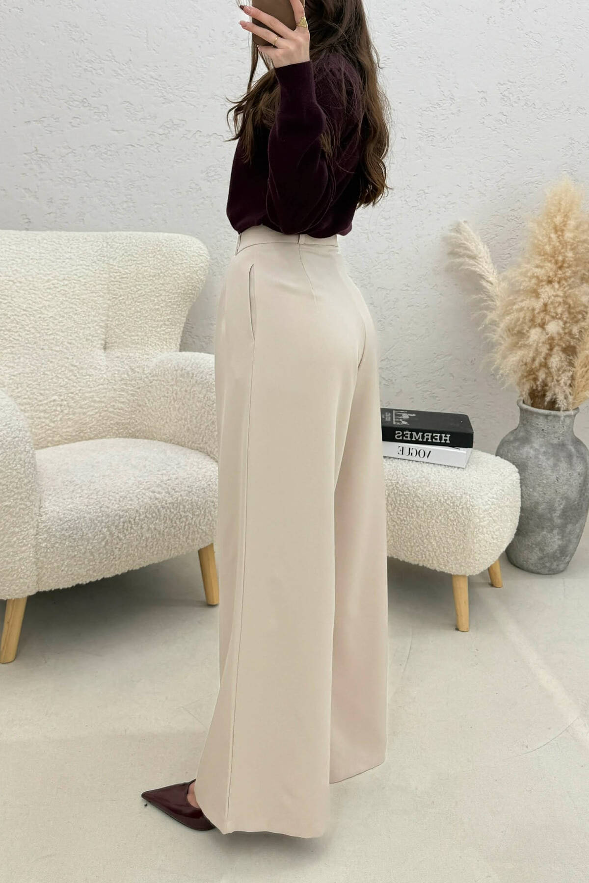 ONE COLOR BELT DETAIL WOMEN TROUSERS BEIGE/BEZHE