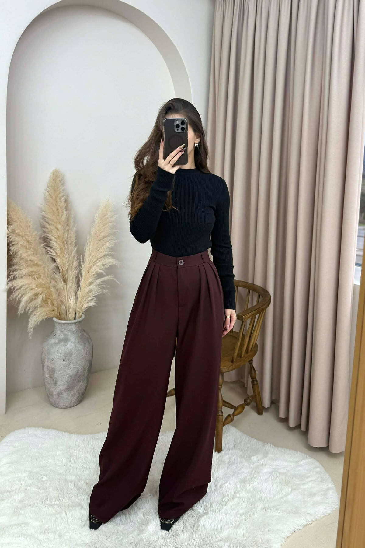 PANTALLONA TE GJERA NJE NGJYRESHE PER FEMRA NË NGJYRE VISHNJE