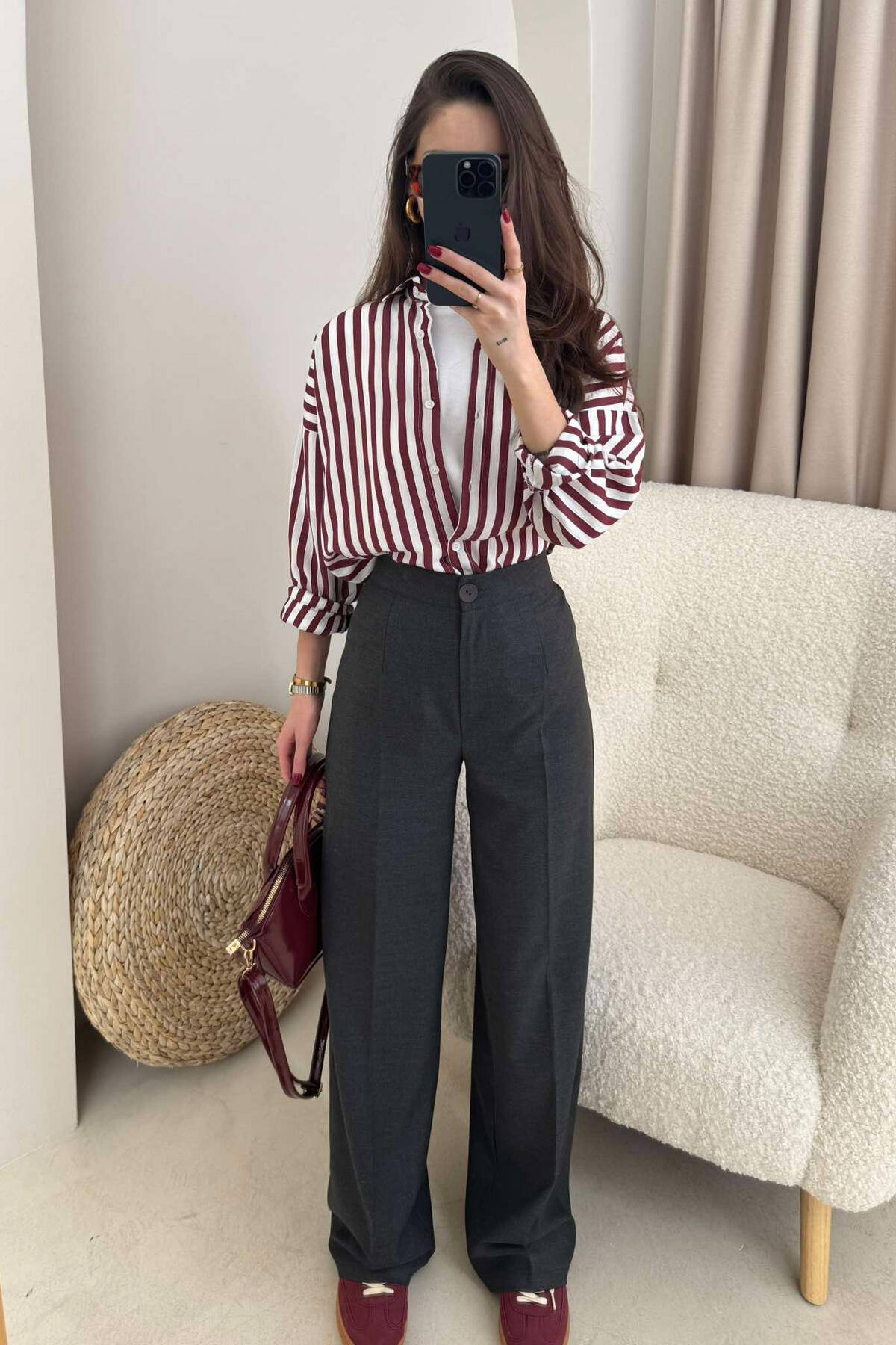 Pantallona Të Thjeshta Për Femra Në Ngjyrë Gri E Errët