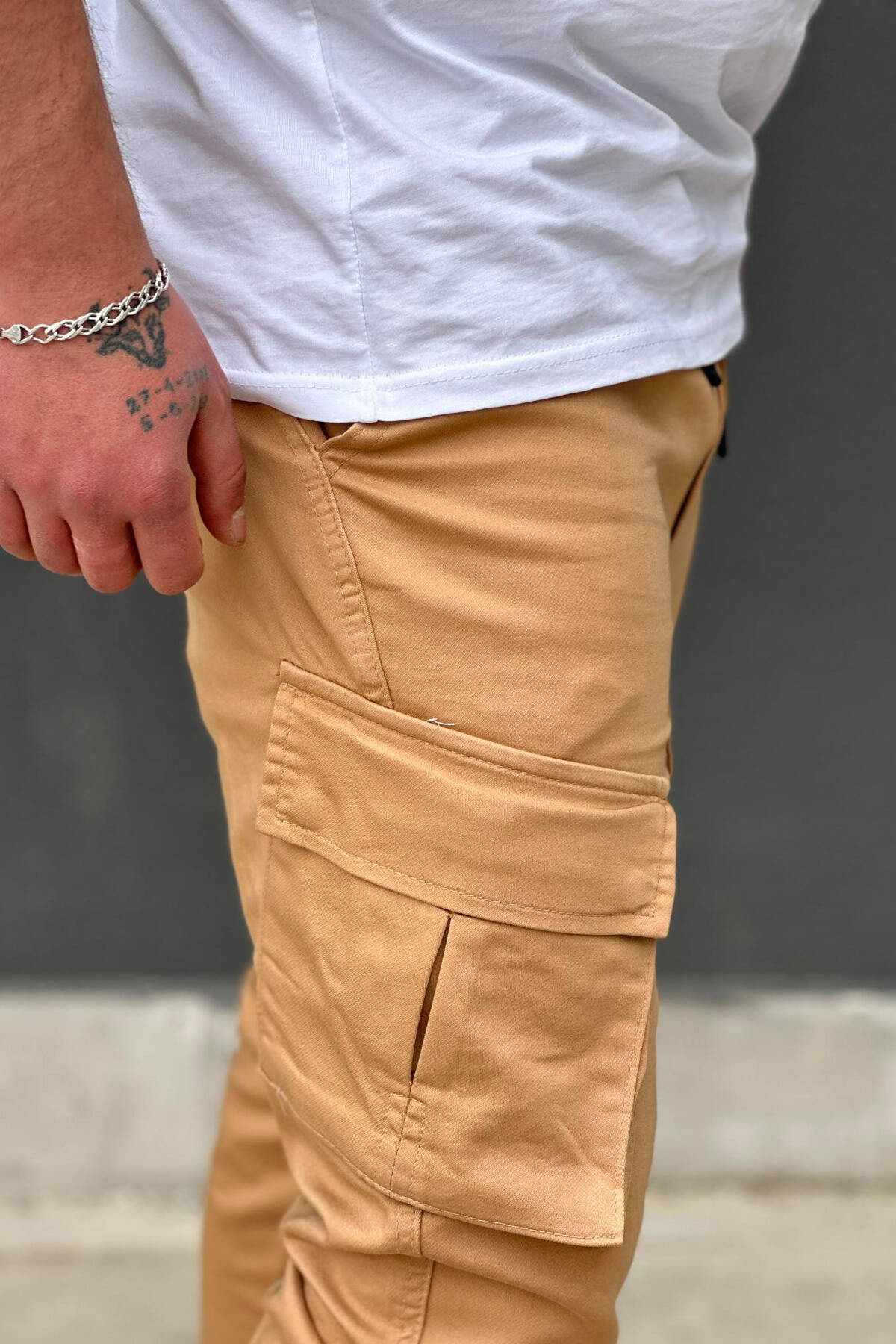 PANTALLONA CARGO ME XHEPA PËR MESHKUJ NË NGJYRËN TULLË