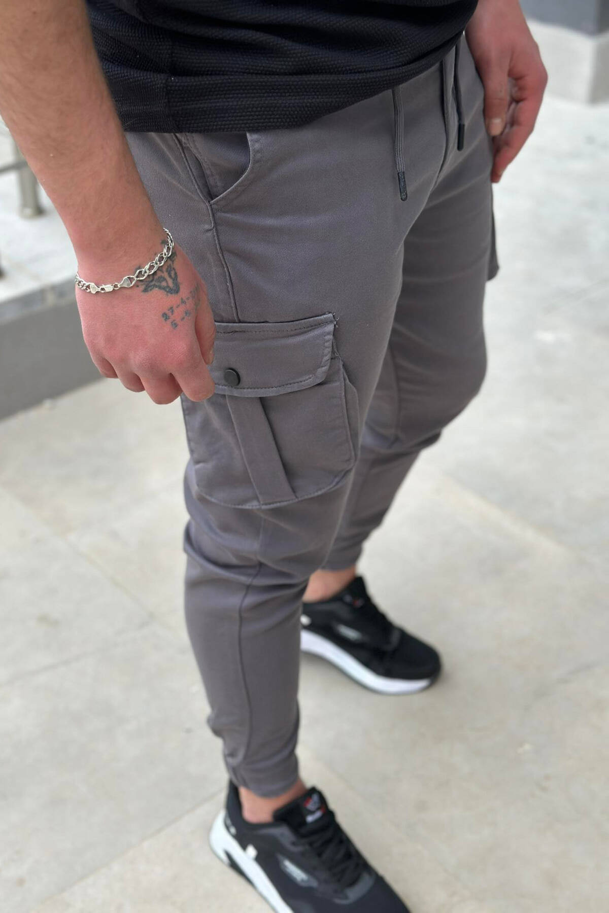 Pantallona cargo me xhepa per meshkuj ne ngjyren gri