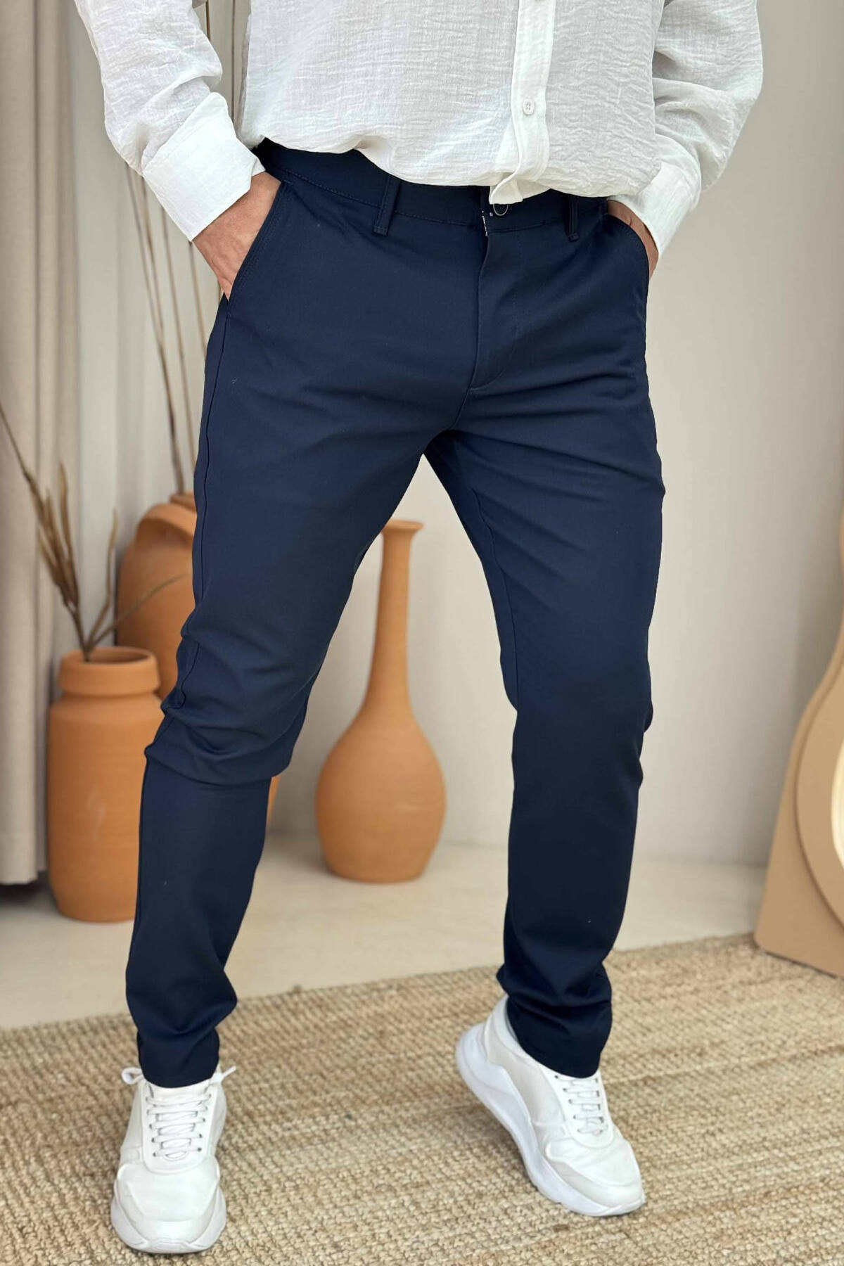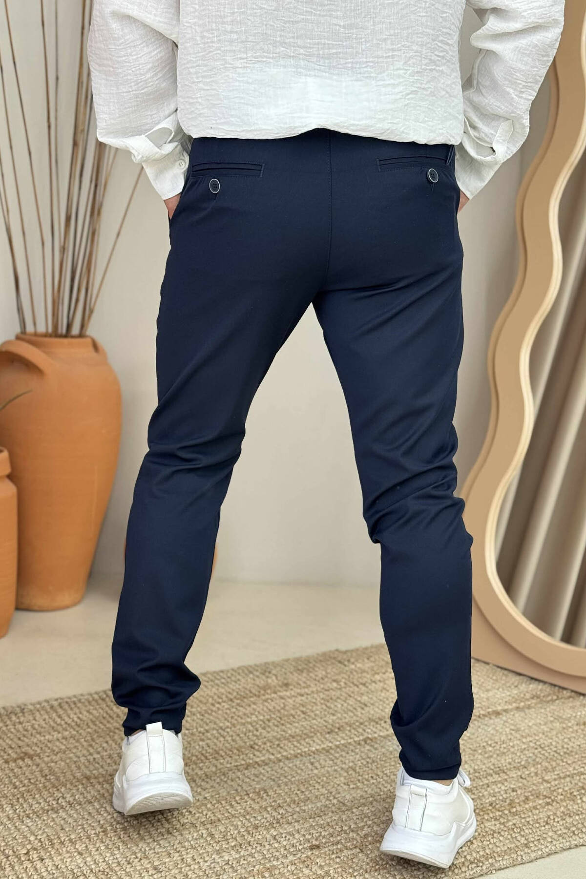PANTALLONA KLASIKE NJË NGJYRËSHE PËR MESHKUJ NË NGJYRËN BLU E ERRËT
