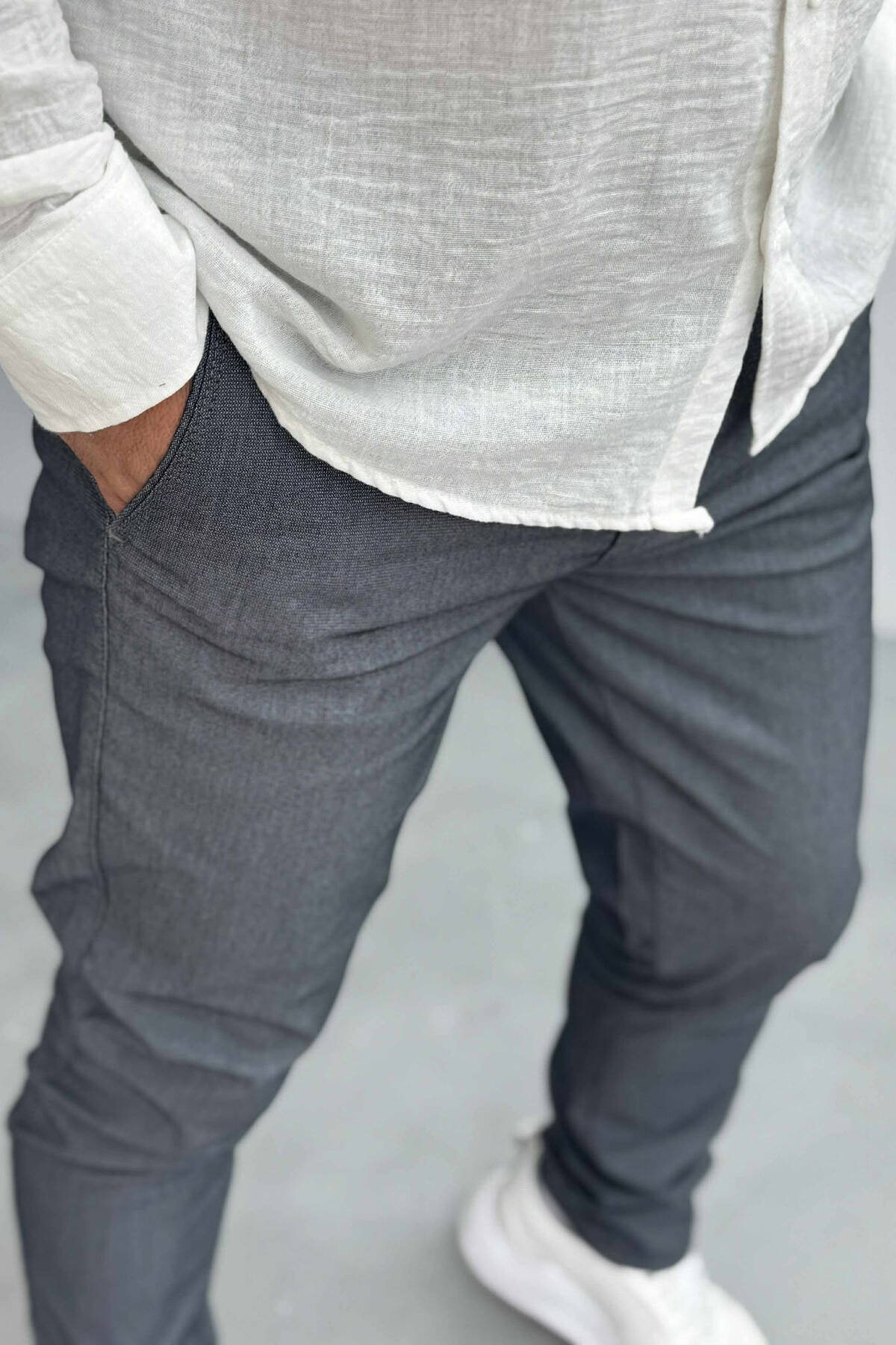 PANTALLONA ME LIDHËSE DHE ME DETAJIN E XHEPAVE PËR MESHKUJ NË NGJYRËN GRI