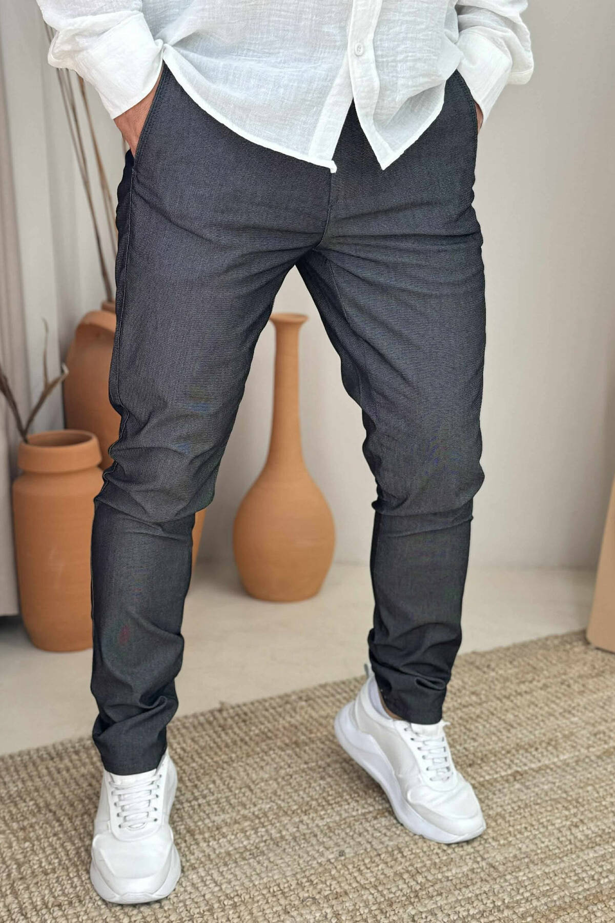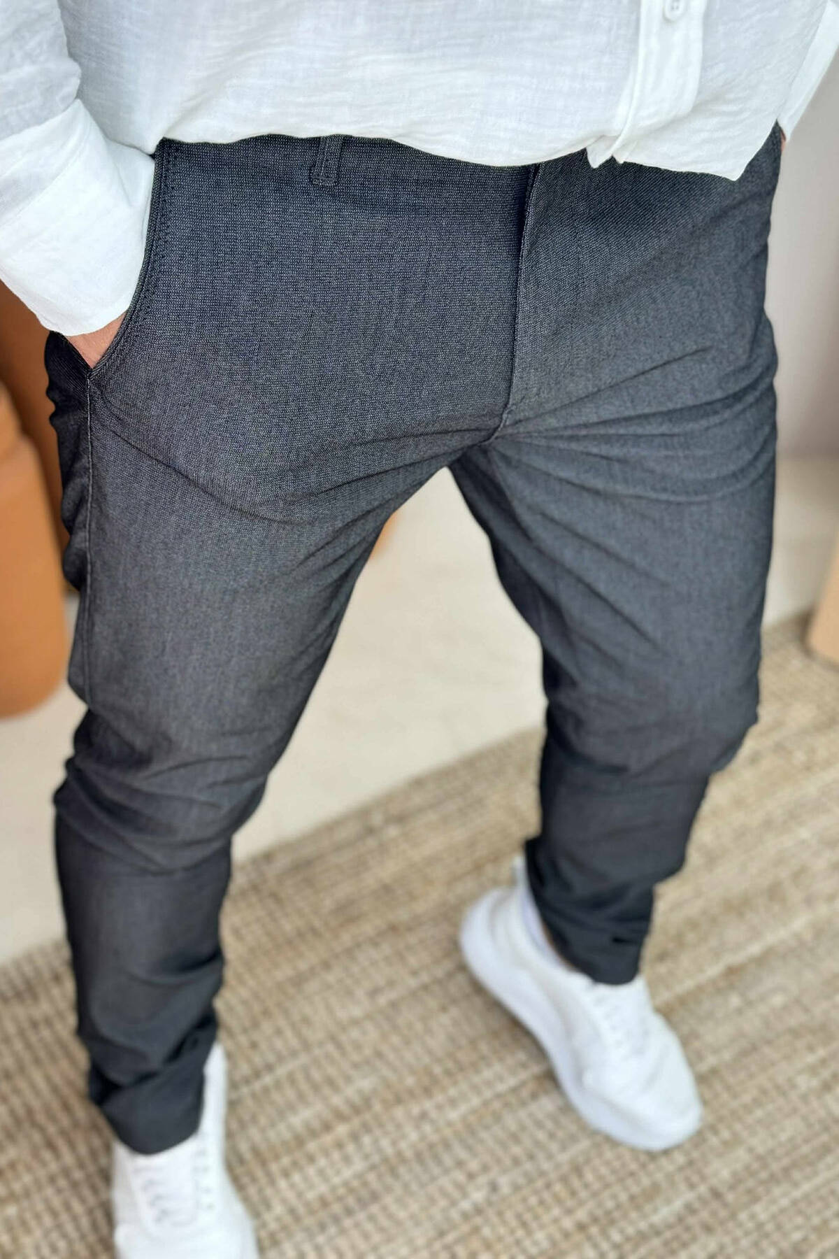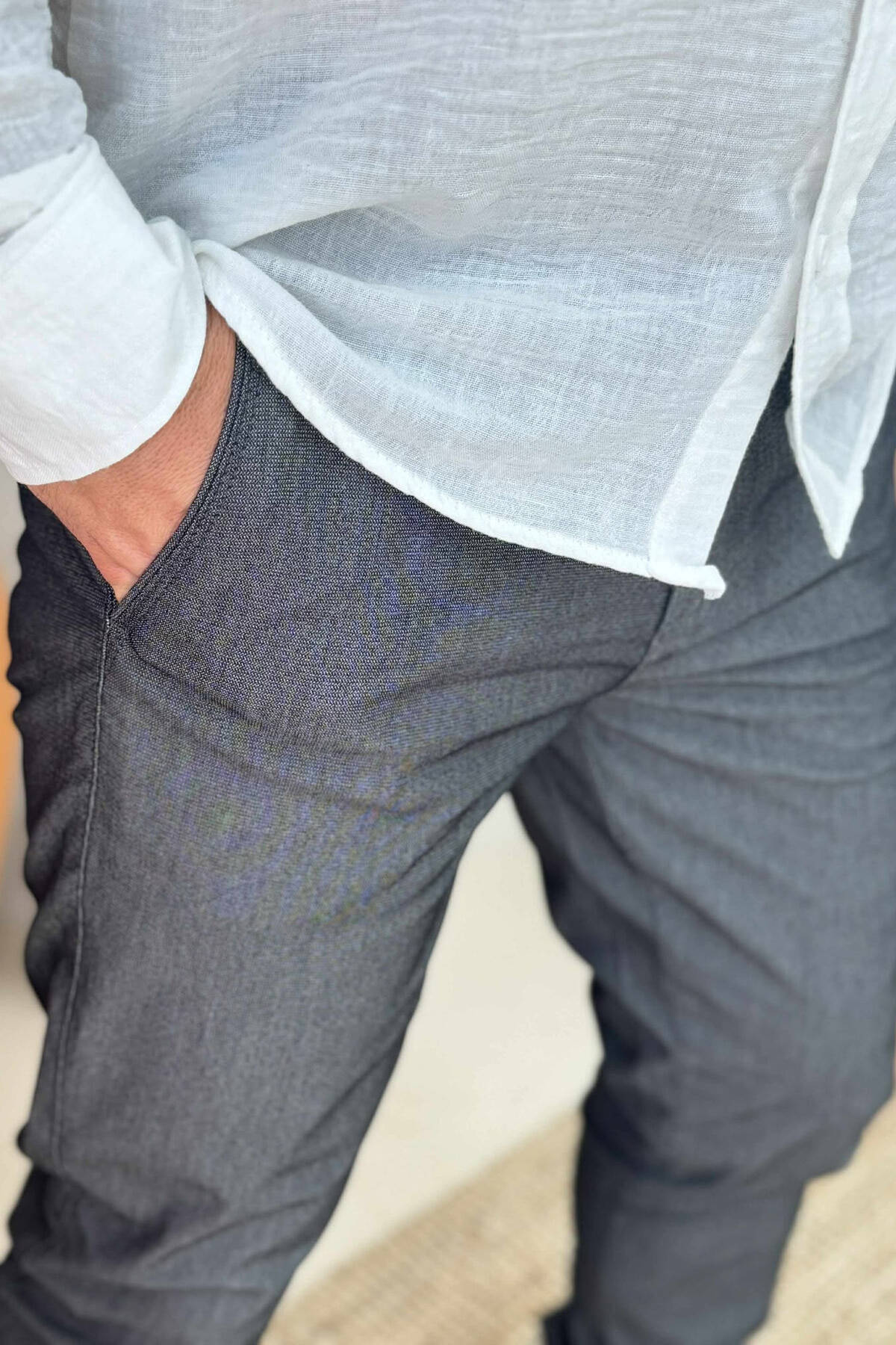 PANTALLONA NJË NGJYRËSHE TË THJESHTA PËR MESHKUJ NË NGJYRËN GRI E ERRËT