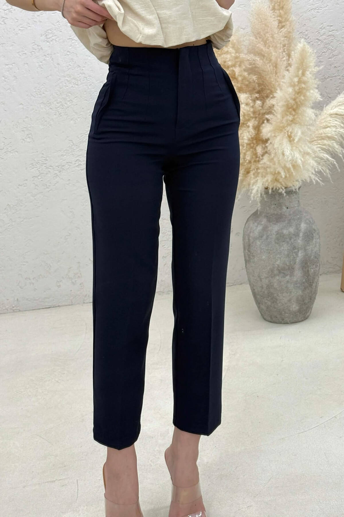 PANTALLONA KLASIKE TE THJESHTA NJE NGJYRESHE PER FEMRA NE NGJYRE BLU MARINE
