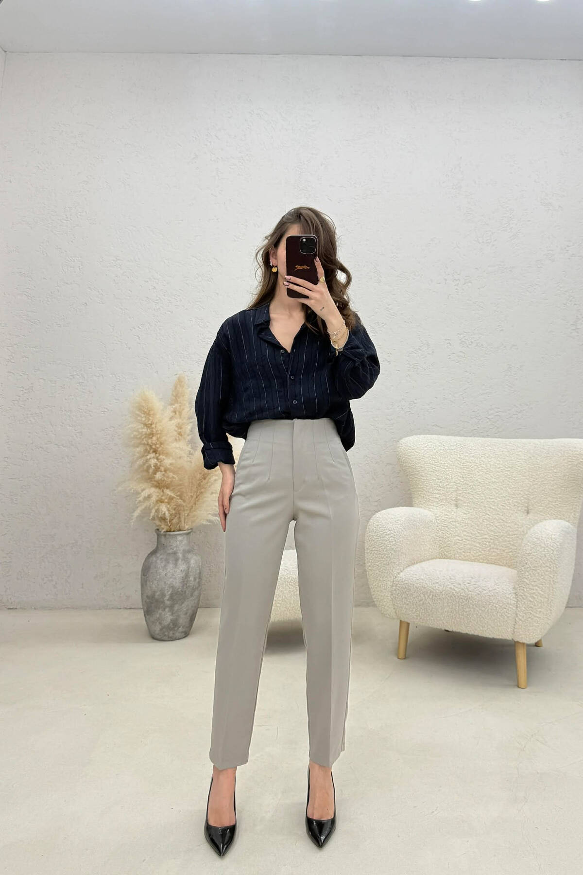 PANTALLONA KLASIKE TE THJESHTA NJE NGJYRESHE PER FEMRA NE NGJYRE GRI TE ZBARDHUR