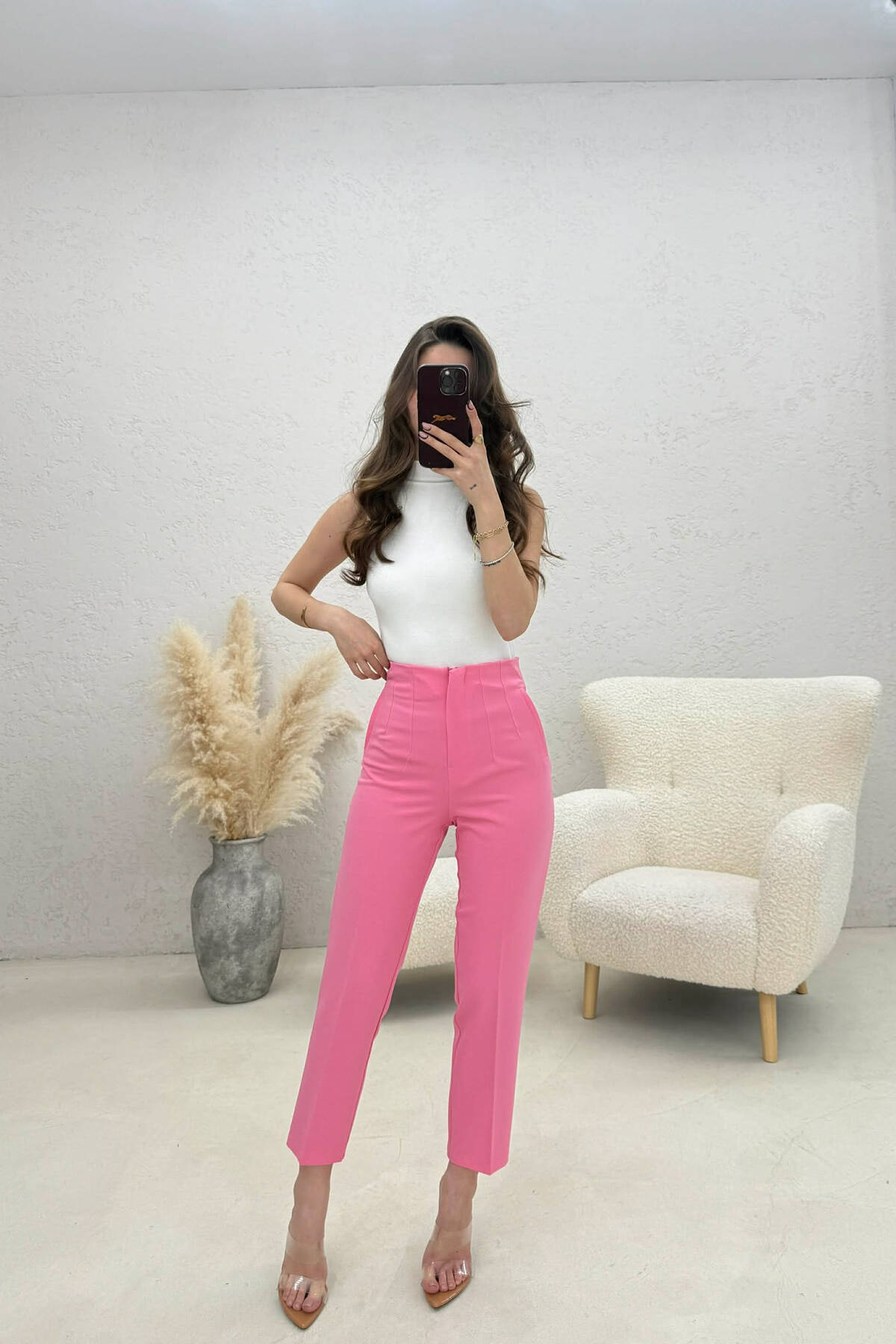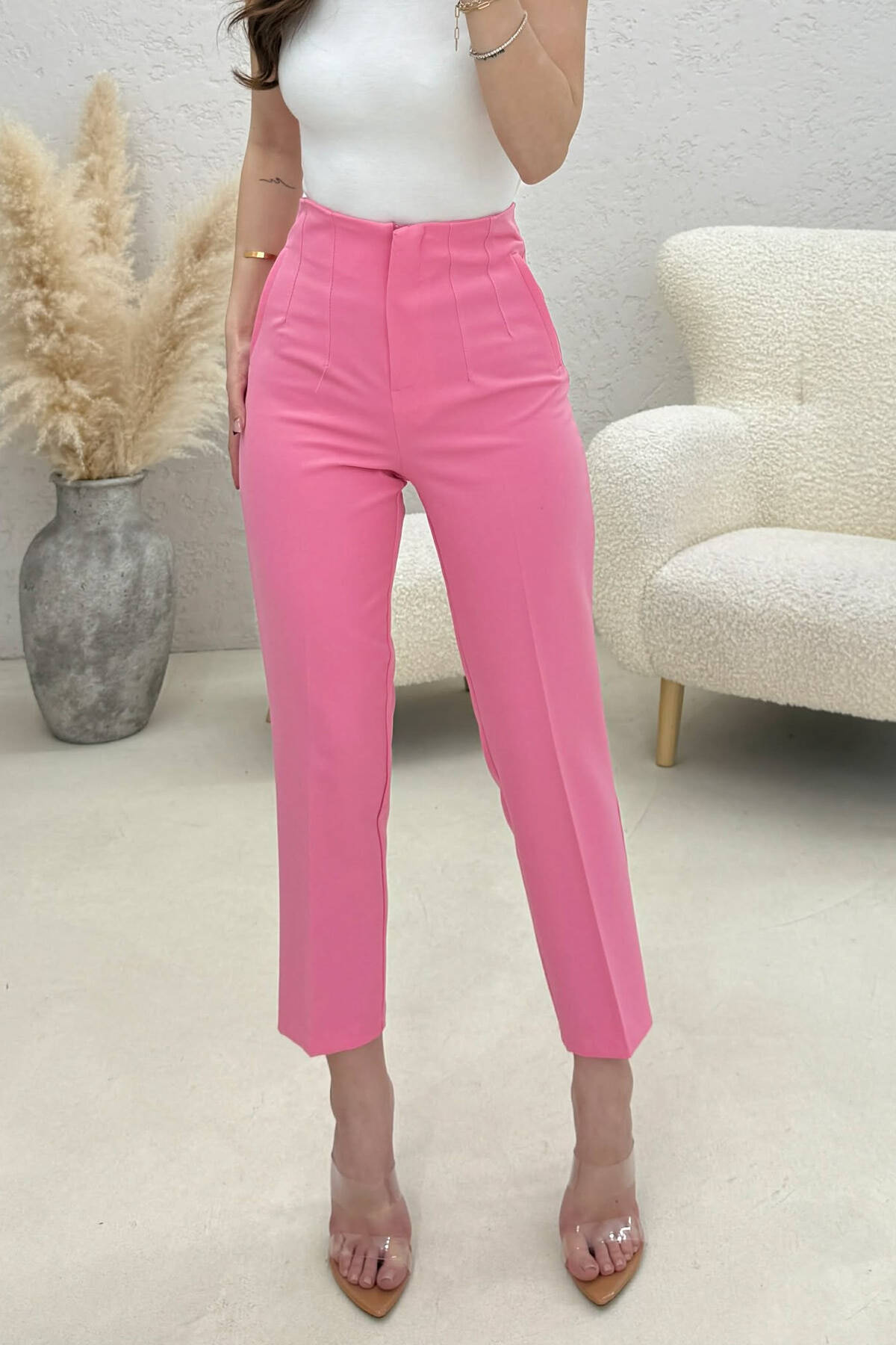 PANTALLONA KLASIKE TE THJESHTA NJE NGJYRESHE PER FEMRA NE NGJYRE ROZE